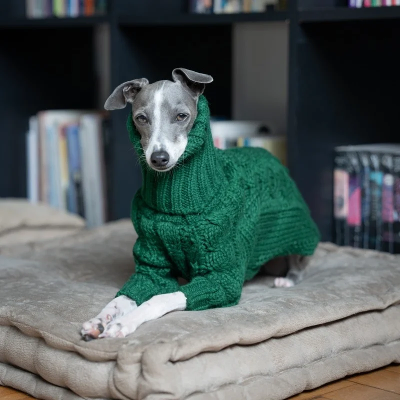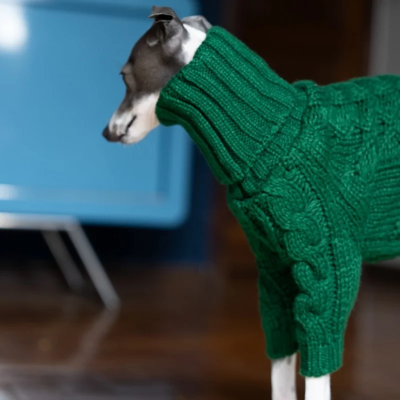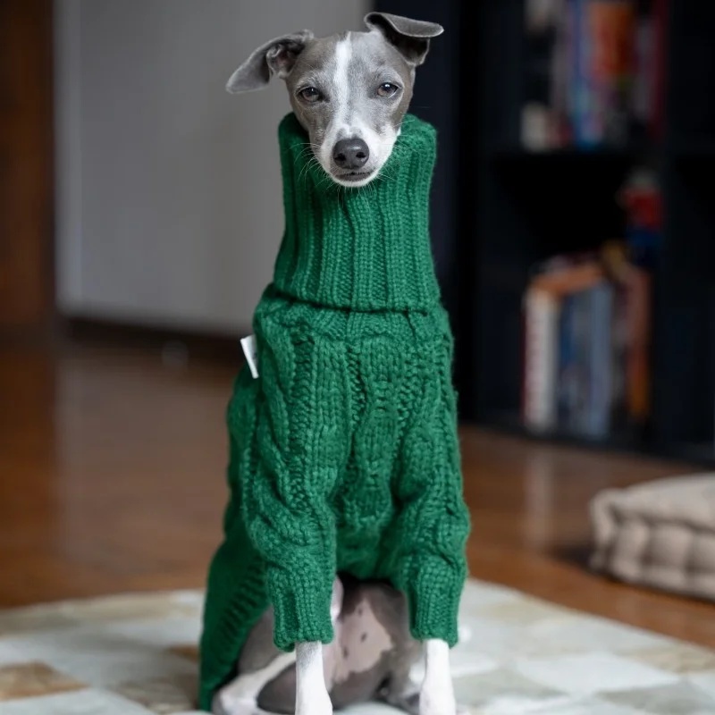 Suéter cálido de invierno de cuello alto para galgo italiano, abrigo suave de 2 patas tejido a mano para primavera, ropa de descanso para perros medianos
