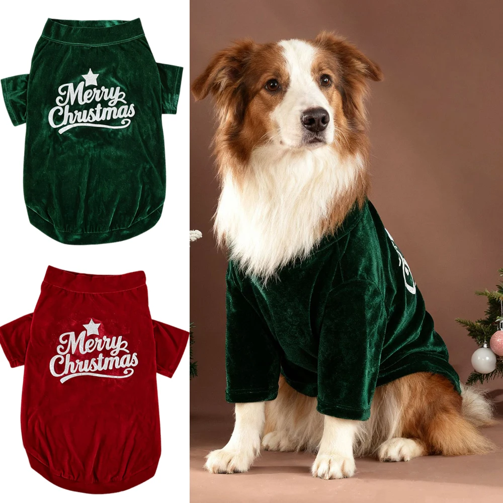 El novedoso estilo con estampado de letras añade un toque festivo al guardarropa de tu perro, perfecto para fotografías navideñas.