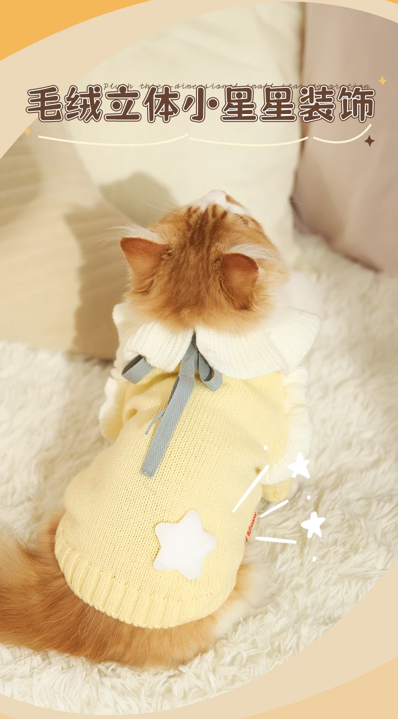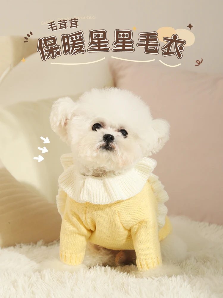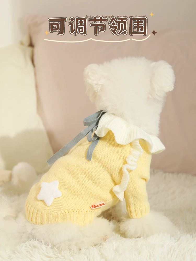 Suéter cálido de otoño/invierno para mascotas, Teddy Schnauzer para perros pequeños, abrigo de estrella de encaje para invierno, ropa navideña para perros, ropa para cachorros