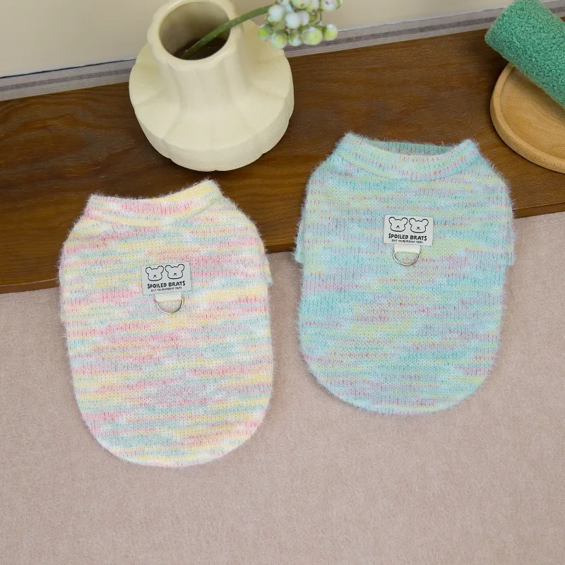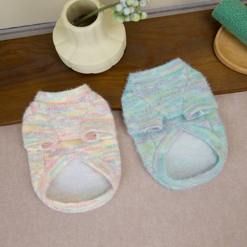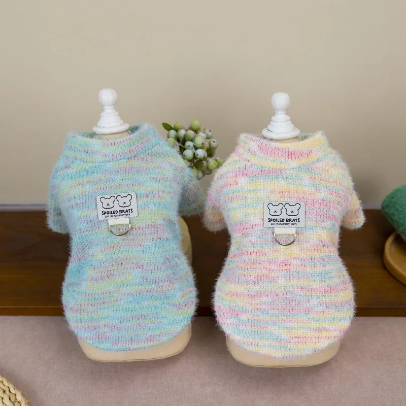 Suéter cálido para perros, ropa colorida de invierno para perros, sudaderas con capucha de punto rosa y azul, abrigo para perros pequeños, suéteres para cachorros Chihuahua
