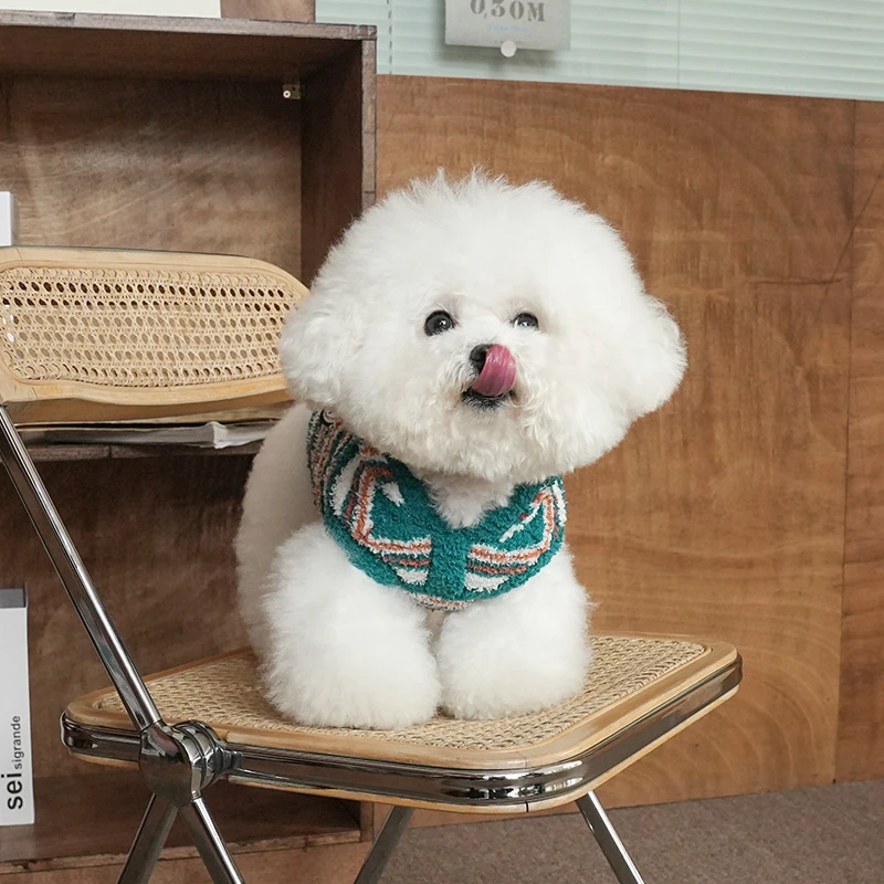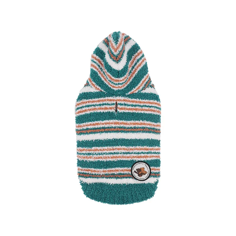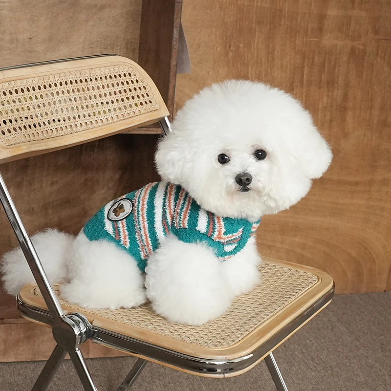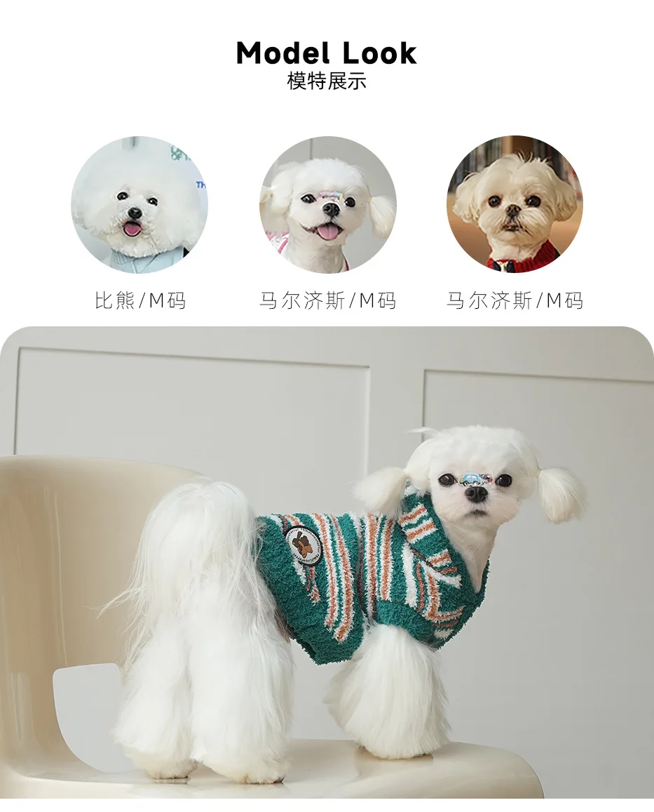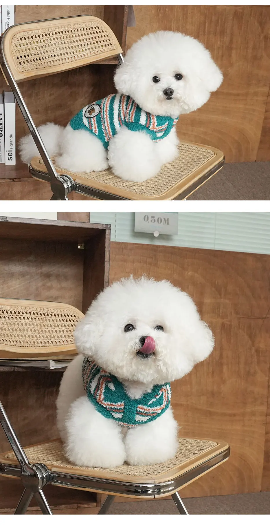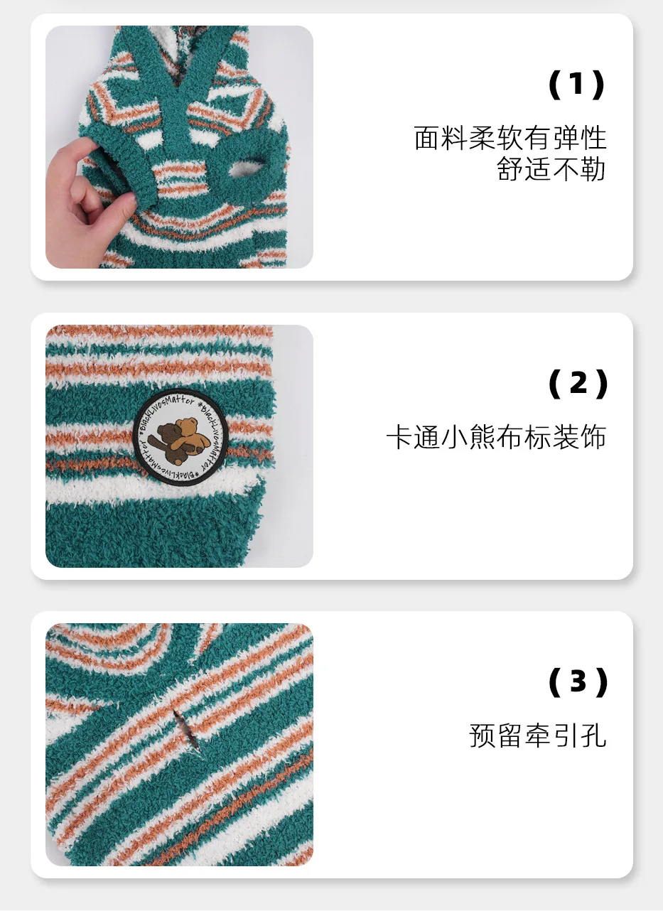 Suéter con capucha para otoño e invierno para mascotas, suéter de punto, abrigo a rayas dulces, suéter de punto cálido sin mangas de dos piernas, ropa para cachorros y mascotas