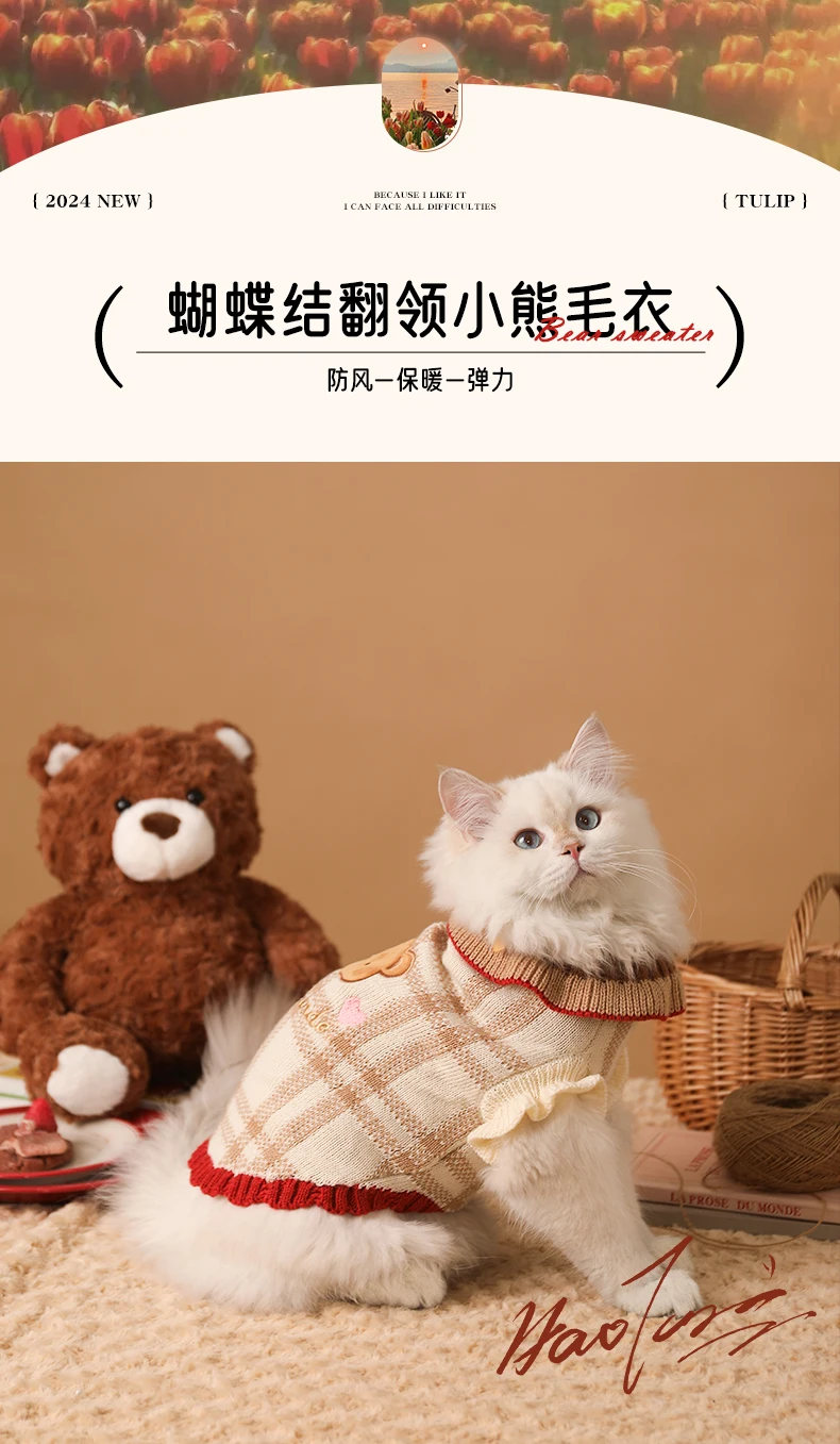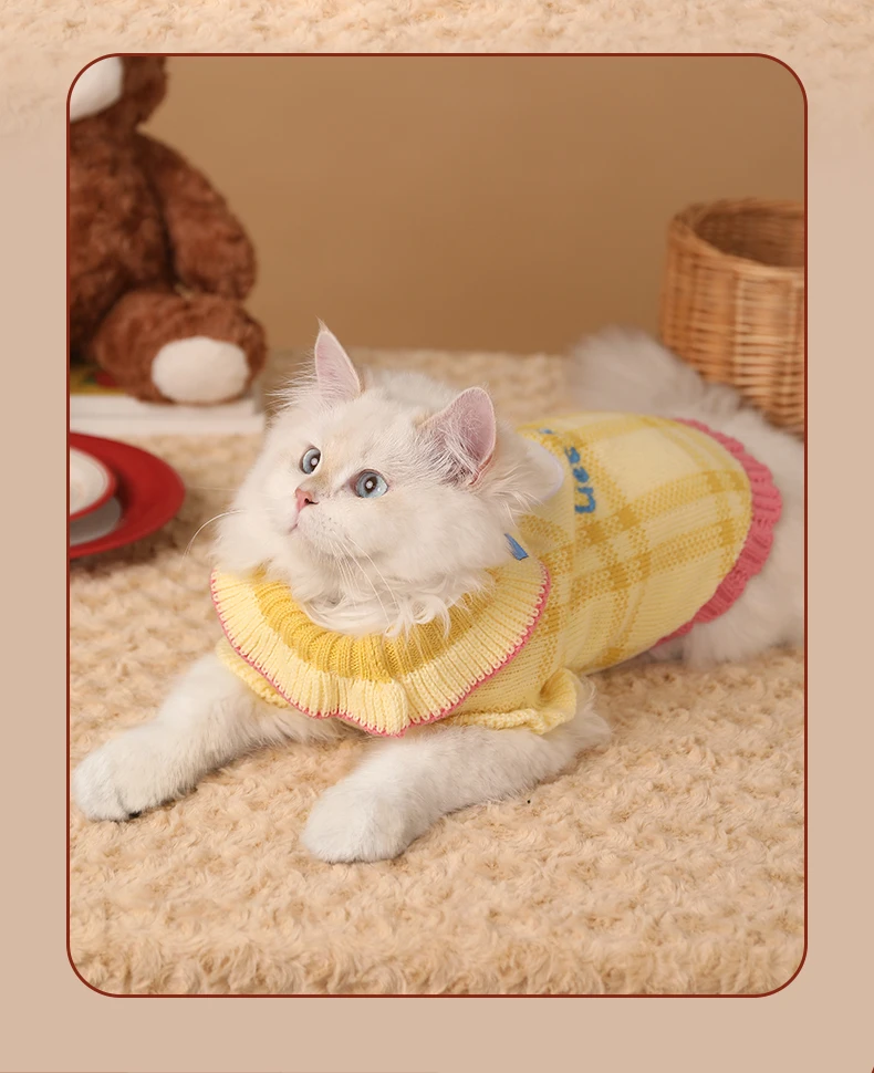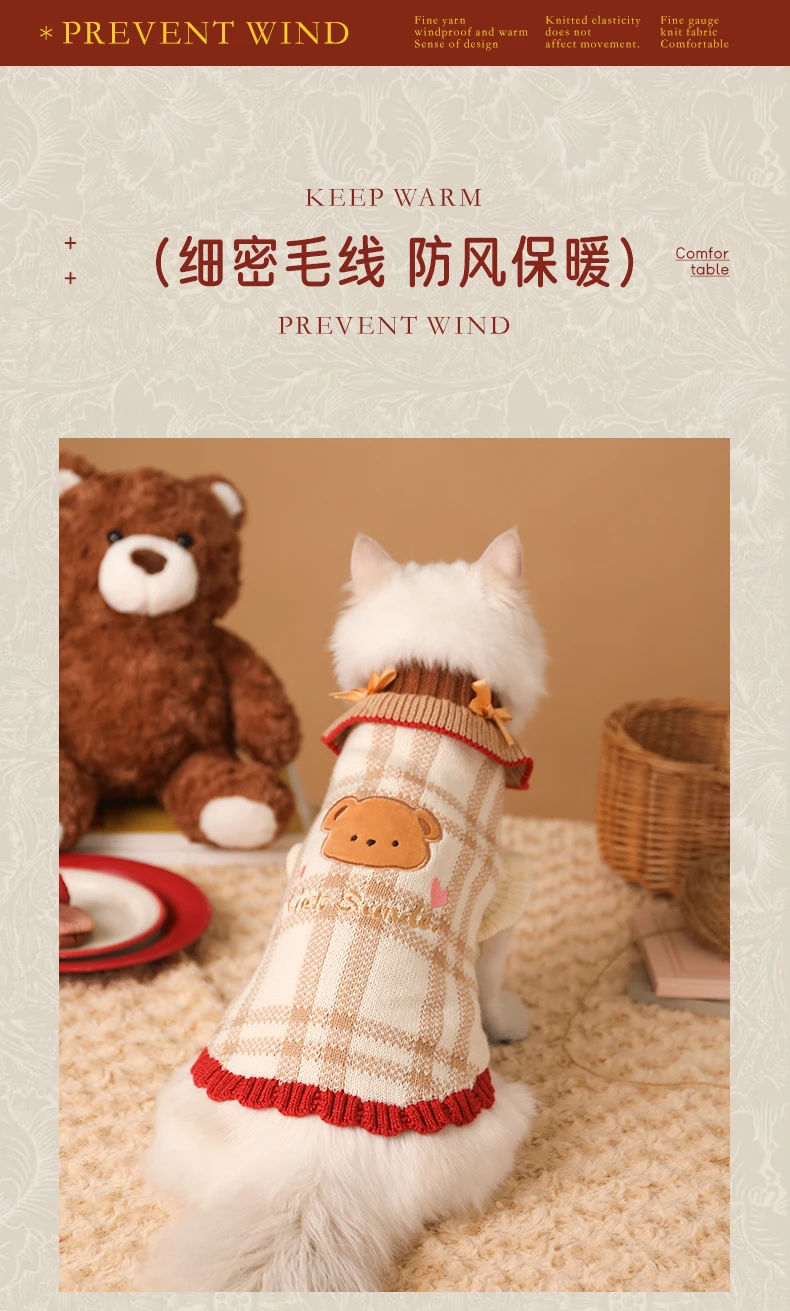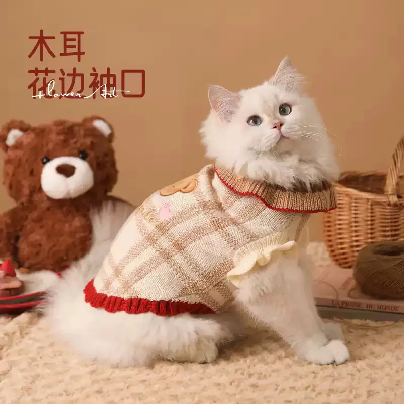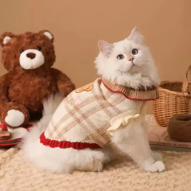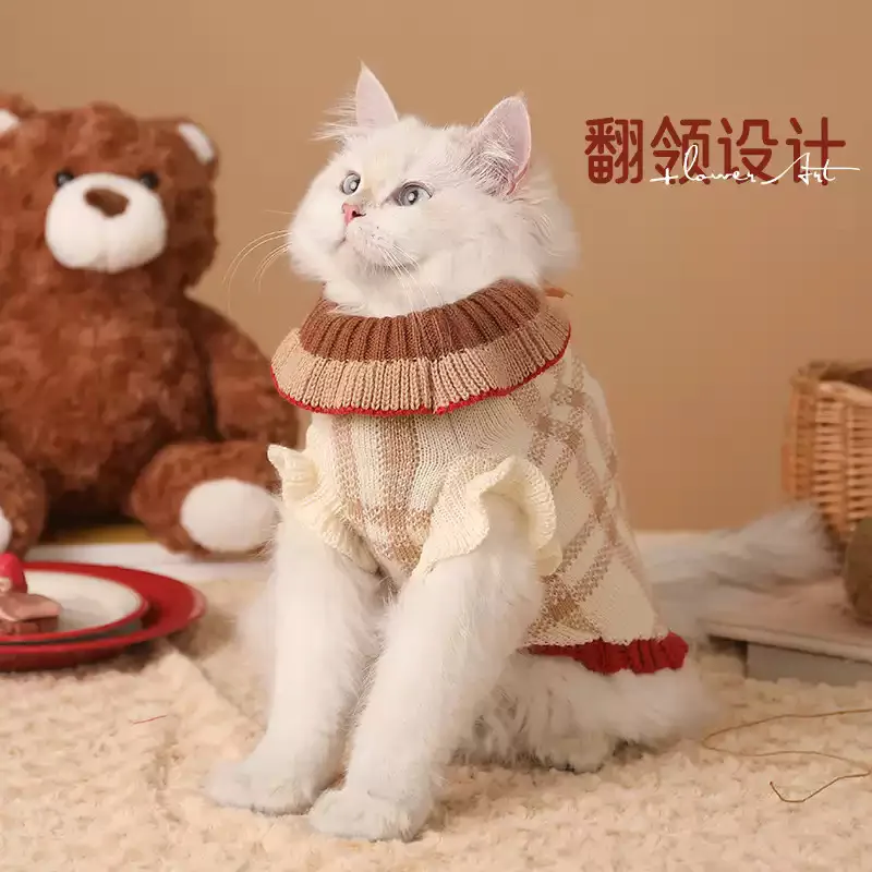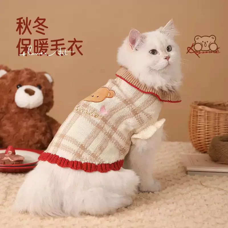 Suéter a cuadros para gatitos de Navidad, abrigo cálido para cachorros, ropa para perros pequeños, otoño e invierno