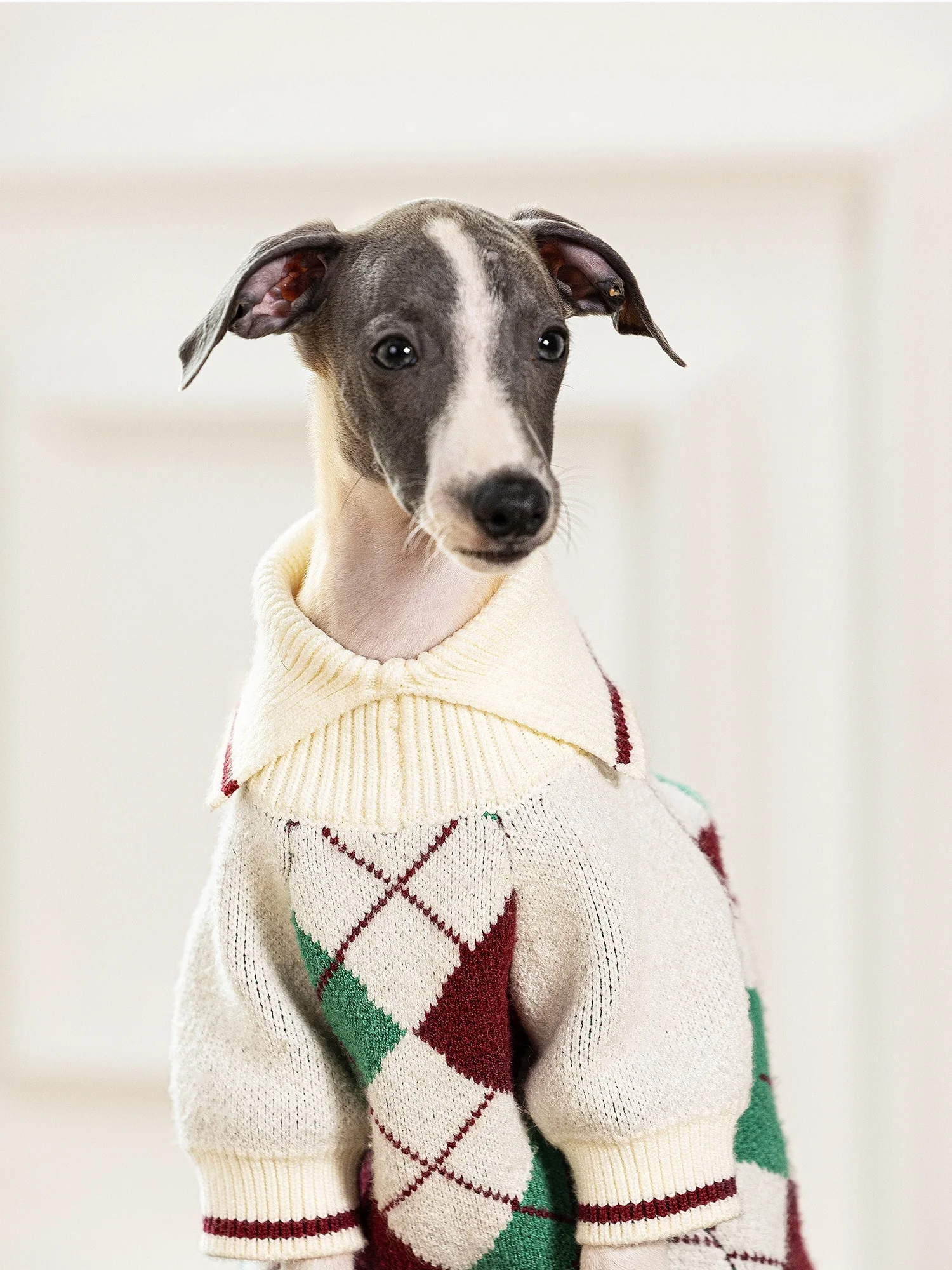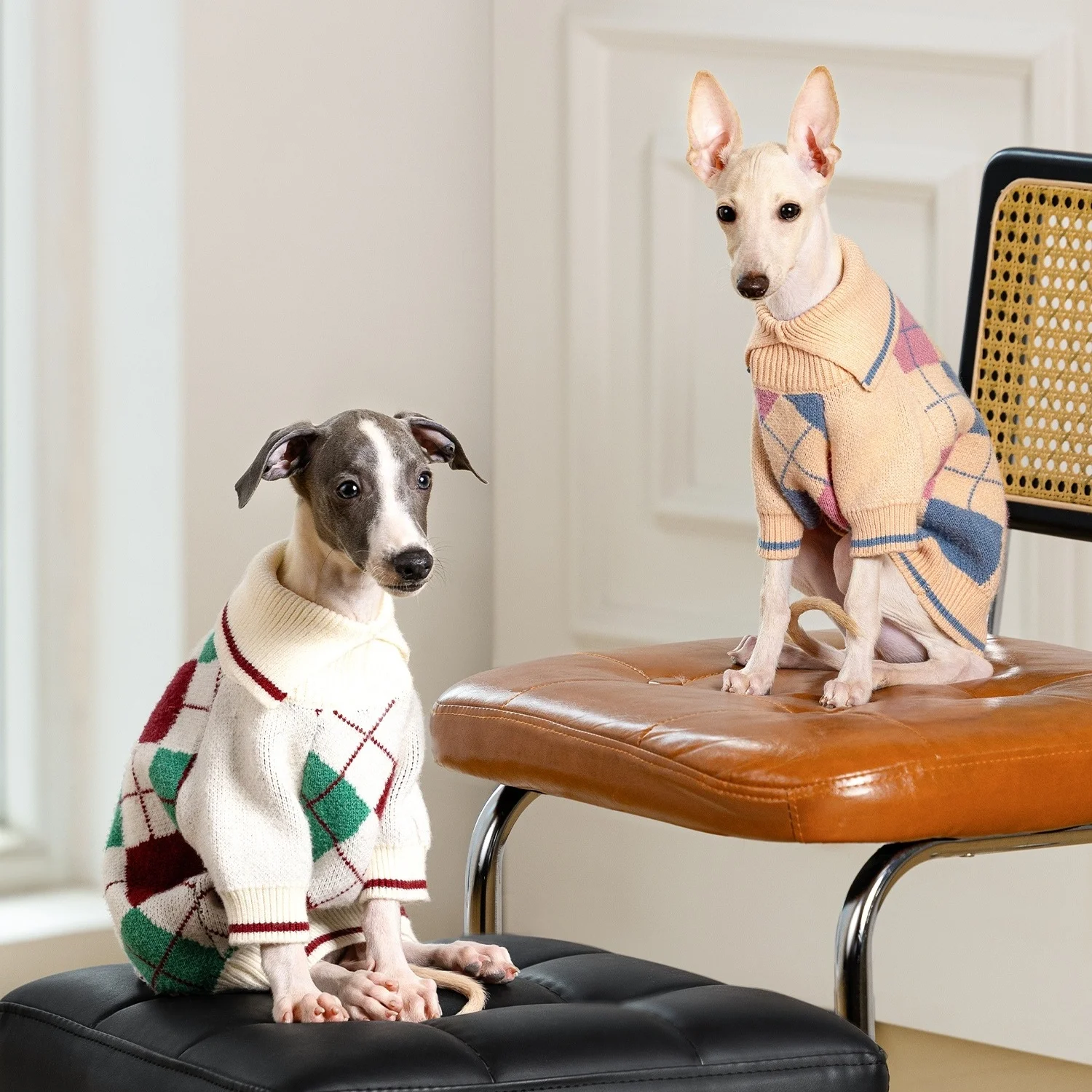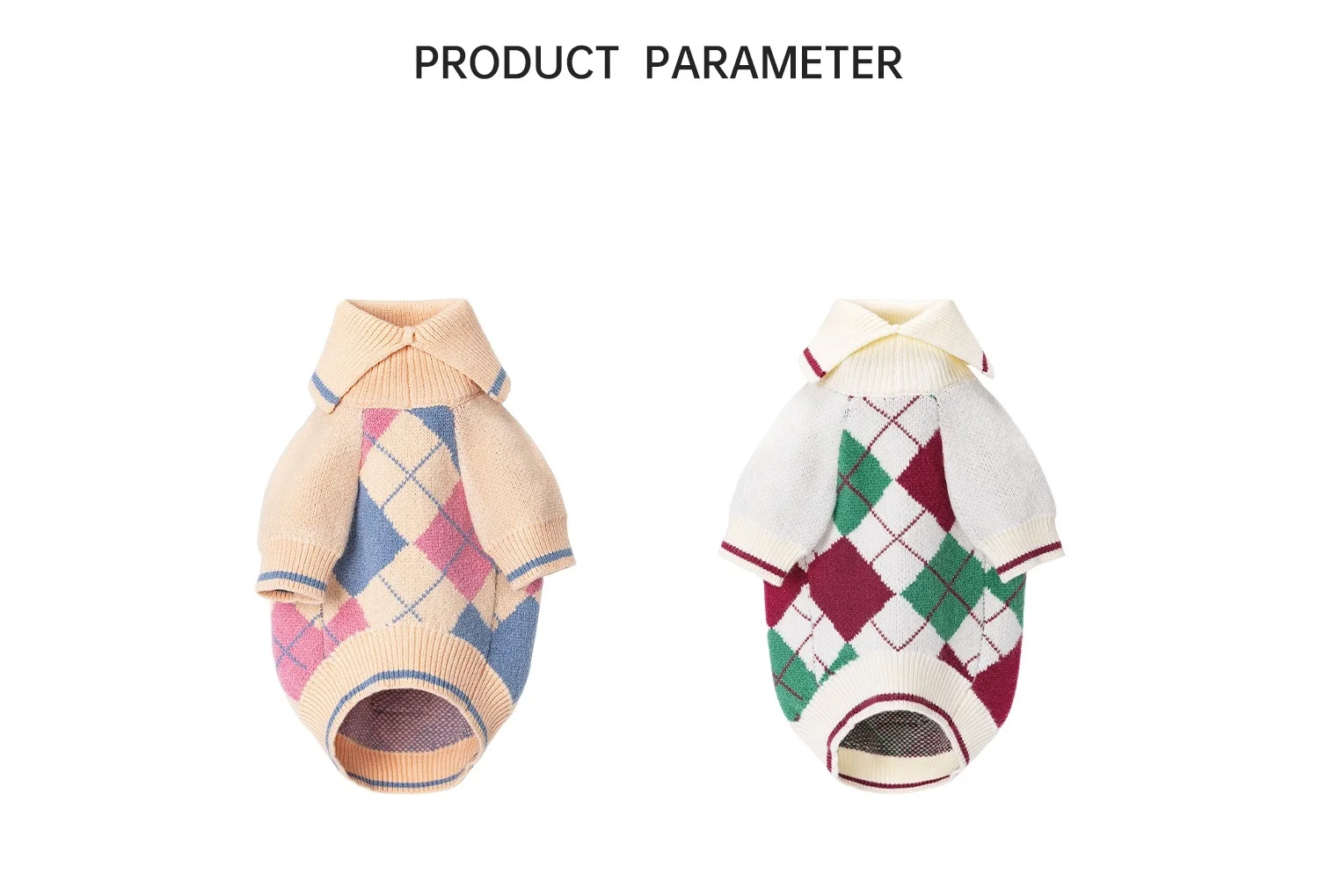 Suéter a cuadros de invierno para perros y mascotas, ropa cálida para caminar al aire libre, jersey de punto para perros, suéter polo para perros de estilo británico