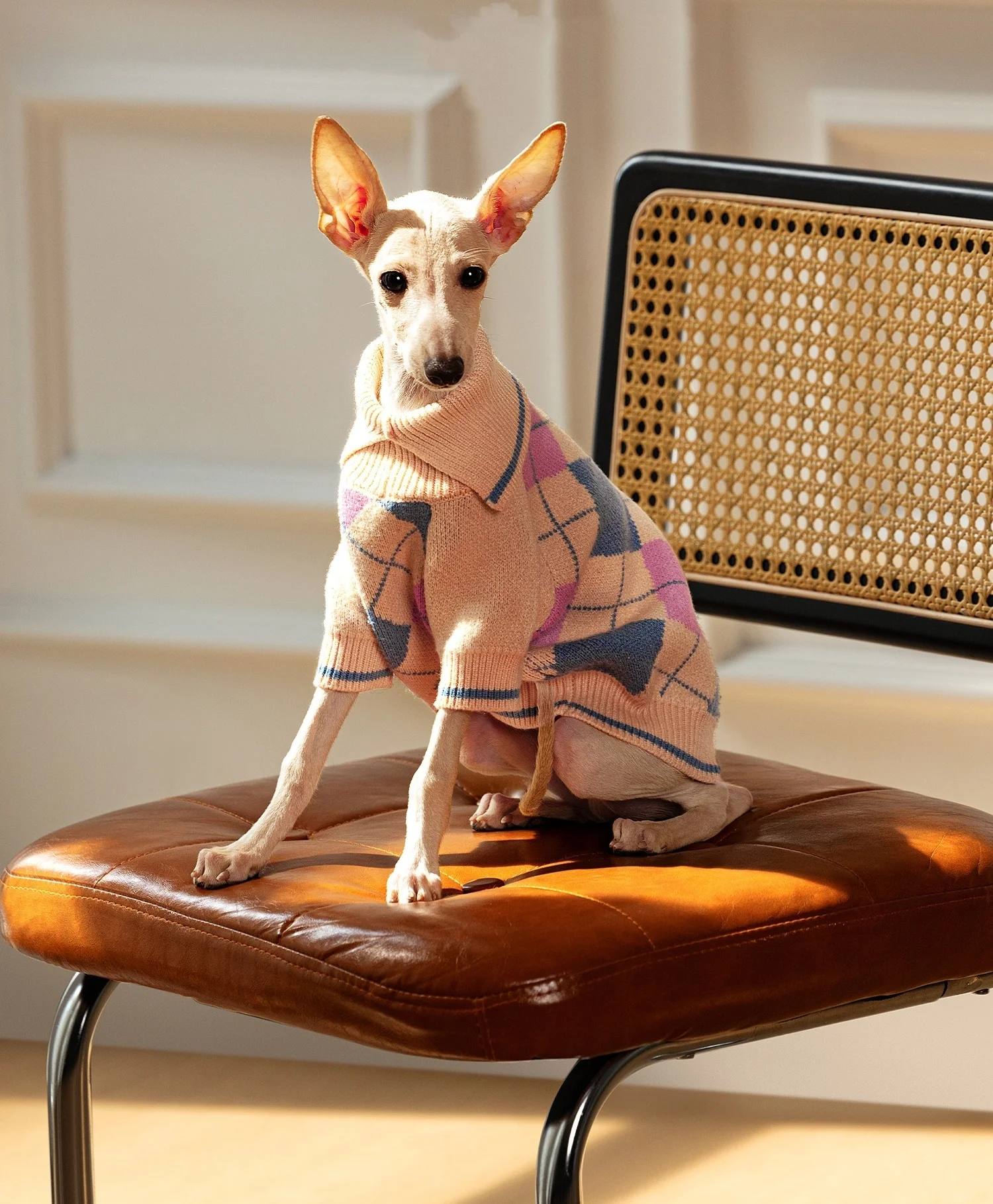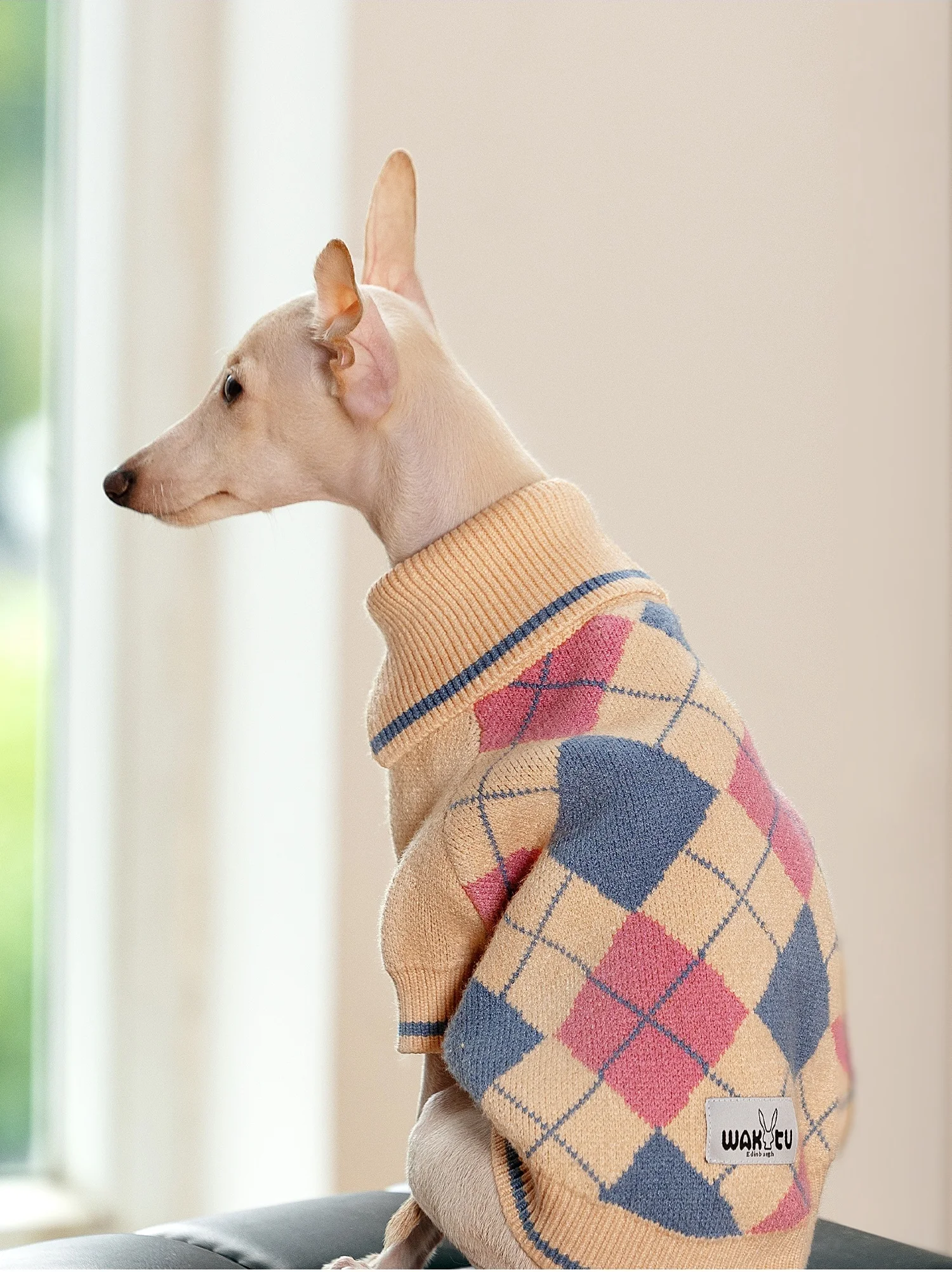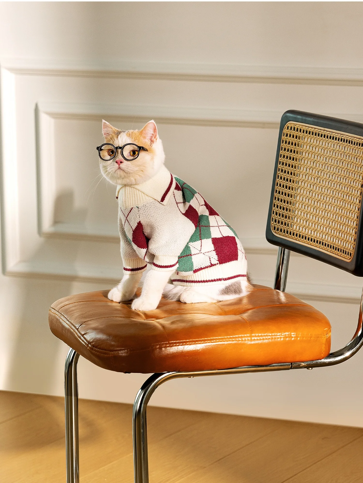Suéter a cuadros de invierno para perros y mascotas, ropa cálida para caminar al aire libre, jersey de punto para perros, suéter polo para perros de estilo británico
