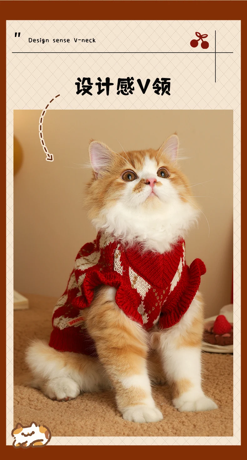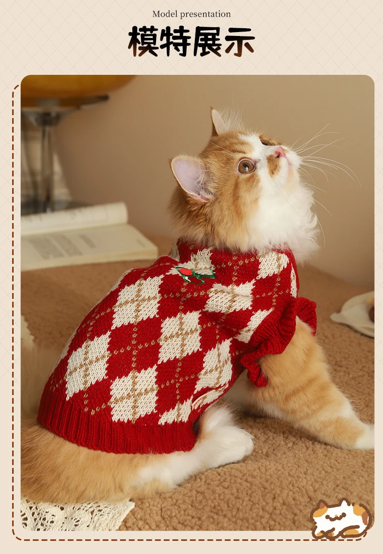 Suéter a cuadros de otoño para mascotas, abrigo tejido con mangas voladoras para gatos, abrigo de Navidad para invierno, Otoño/Invierno, ropa para cachorros