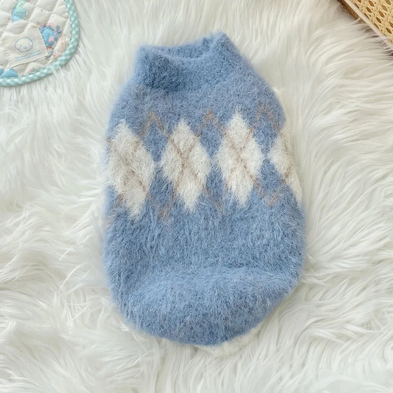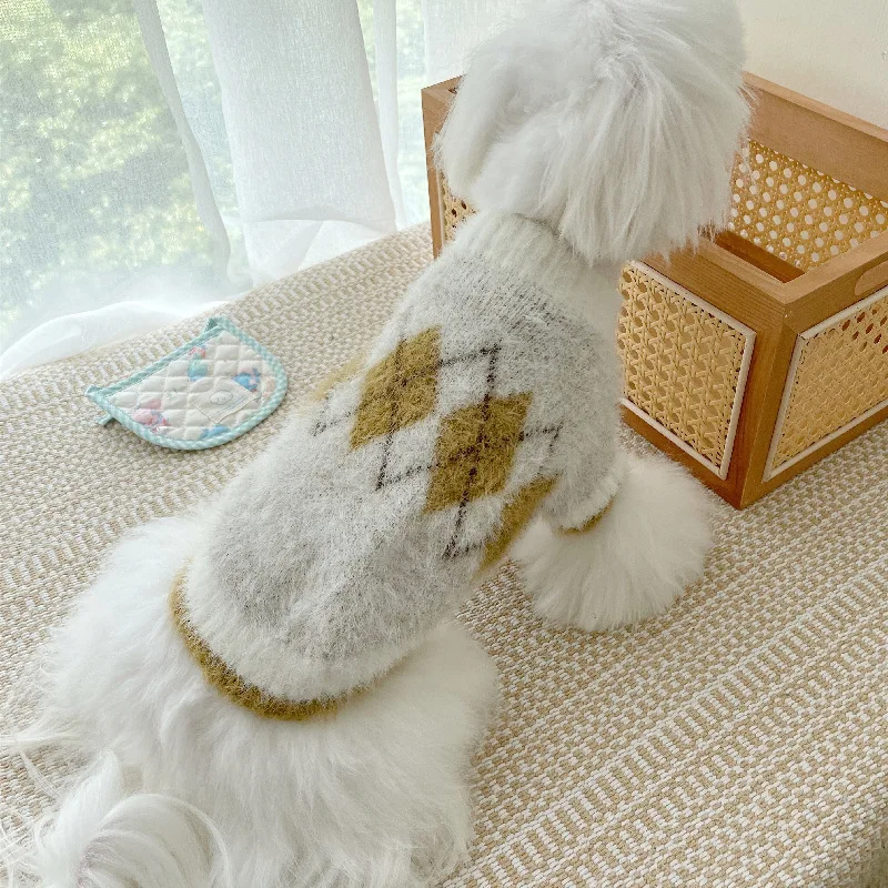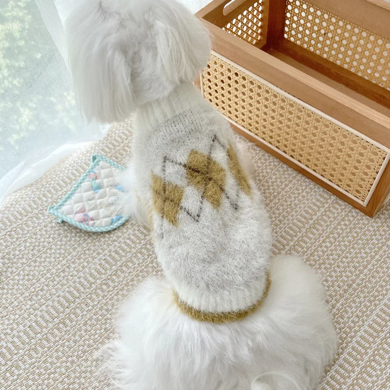 Suéter de felpa para mascotas, suéter a cuadros con diamantes para mascotas, ropa para perros pequeños, abrigo para perros de otoño e invierno, ropa para perros pequeños