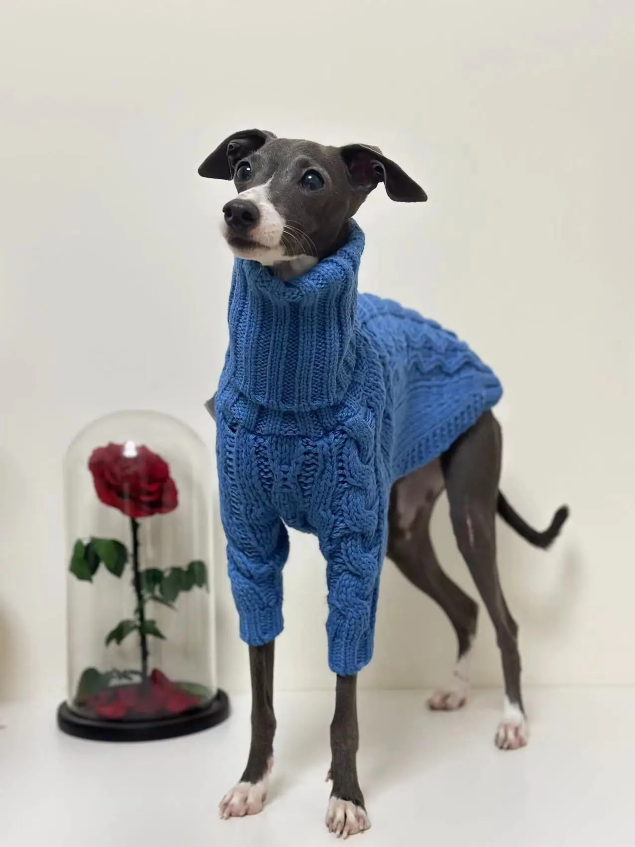 Suéter cálido para mascotas de otoño, ropa elegante con cuello alto, color gris italiano, ropa Whippet