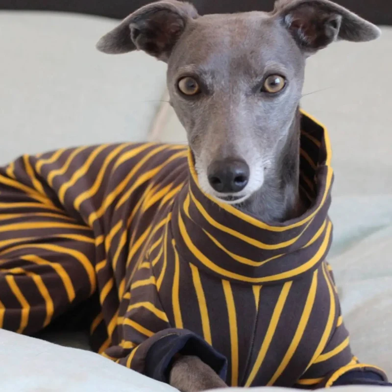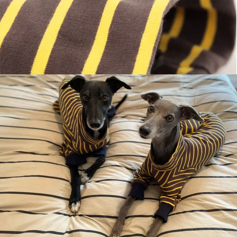 Suéter grueso y cálido a rayas de corteza italiana, ropa para perros con cuello alto Whippet, ropa elástica suave para mascotas pequeñas y medianas grandes
