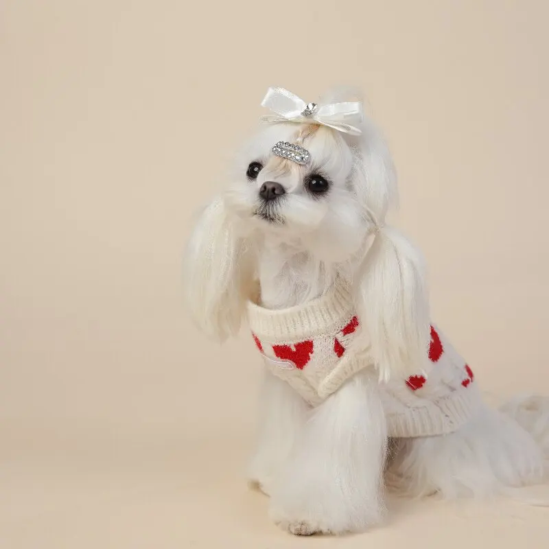 Suéter informal para el Día de San Valentín para mascotas, suéter tejido de amor, abrigo de peluche Schnauzer, suéteres para gatos, ropa para cachorros, Otoño/Invierno