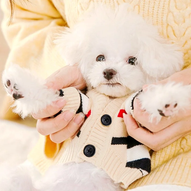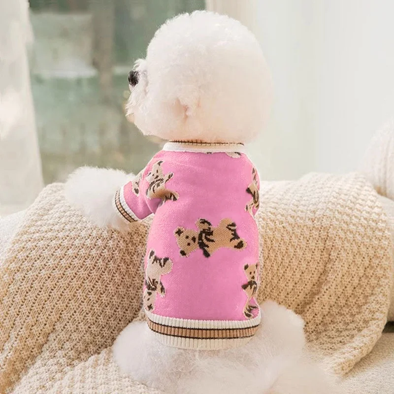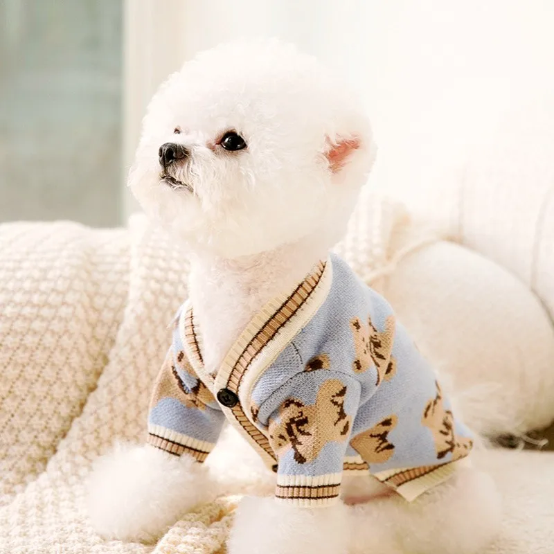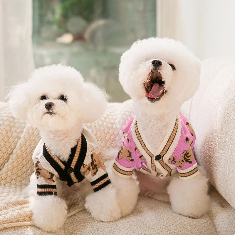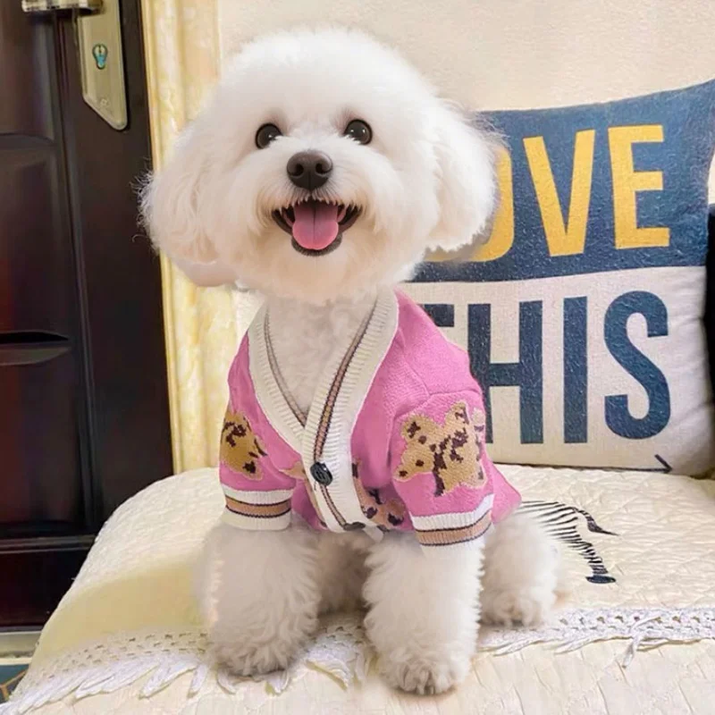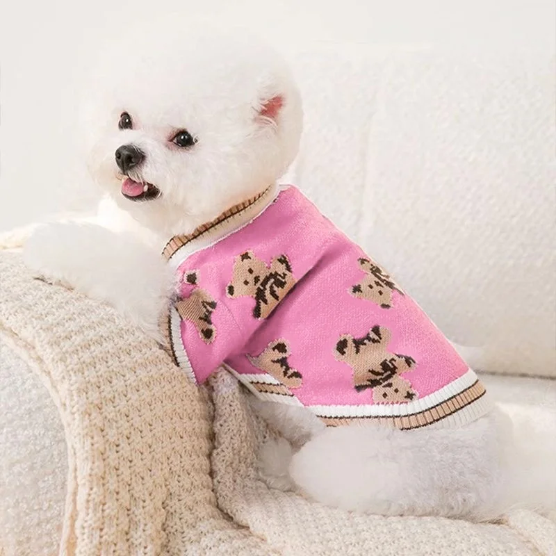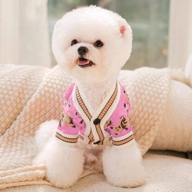 Suéter de invierno para perros pequeños, cárdigan a rayas para perros, suéter tejido con estampado de oso, abrigo de gato a la moda, ropa para perros con caniche