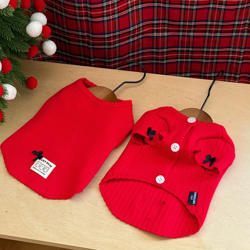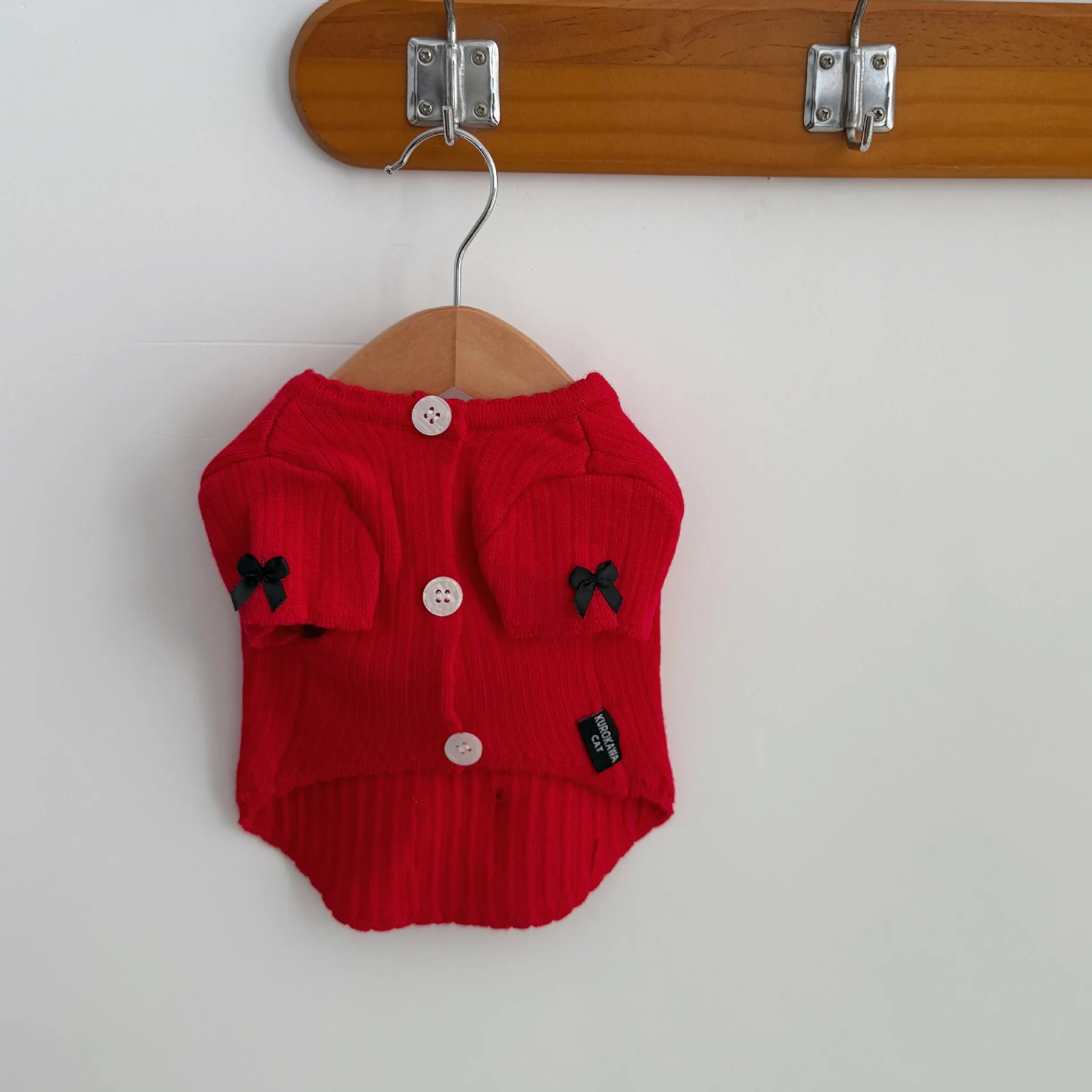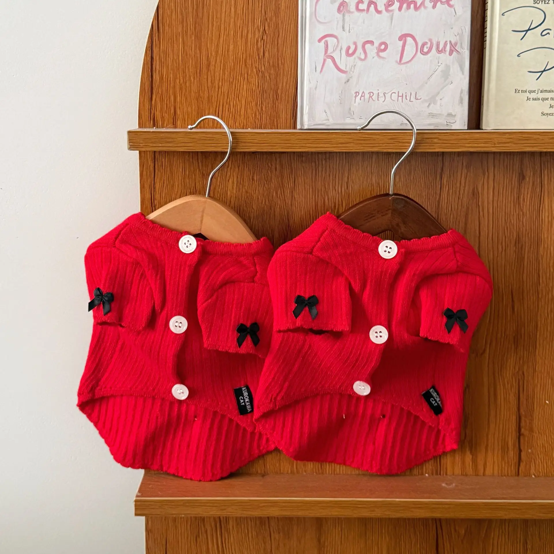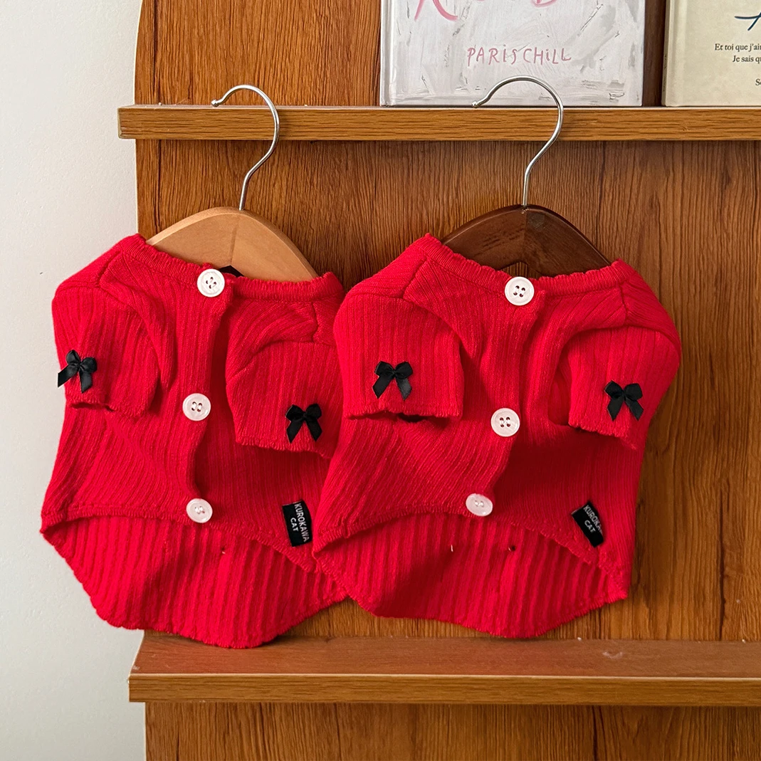 Suéter con lazo para mascotas, cárdigan, suéter con Base para gatos, bonito oso de peluche, abrigo de Navidad y Año Nuevo, suéter rojo para perros pequeños y mascotas