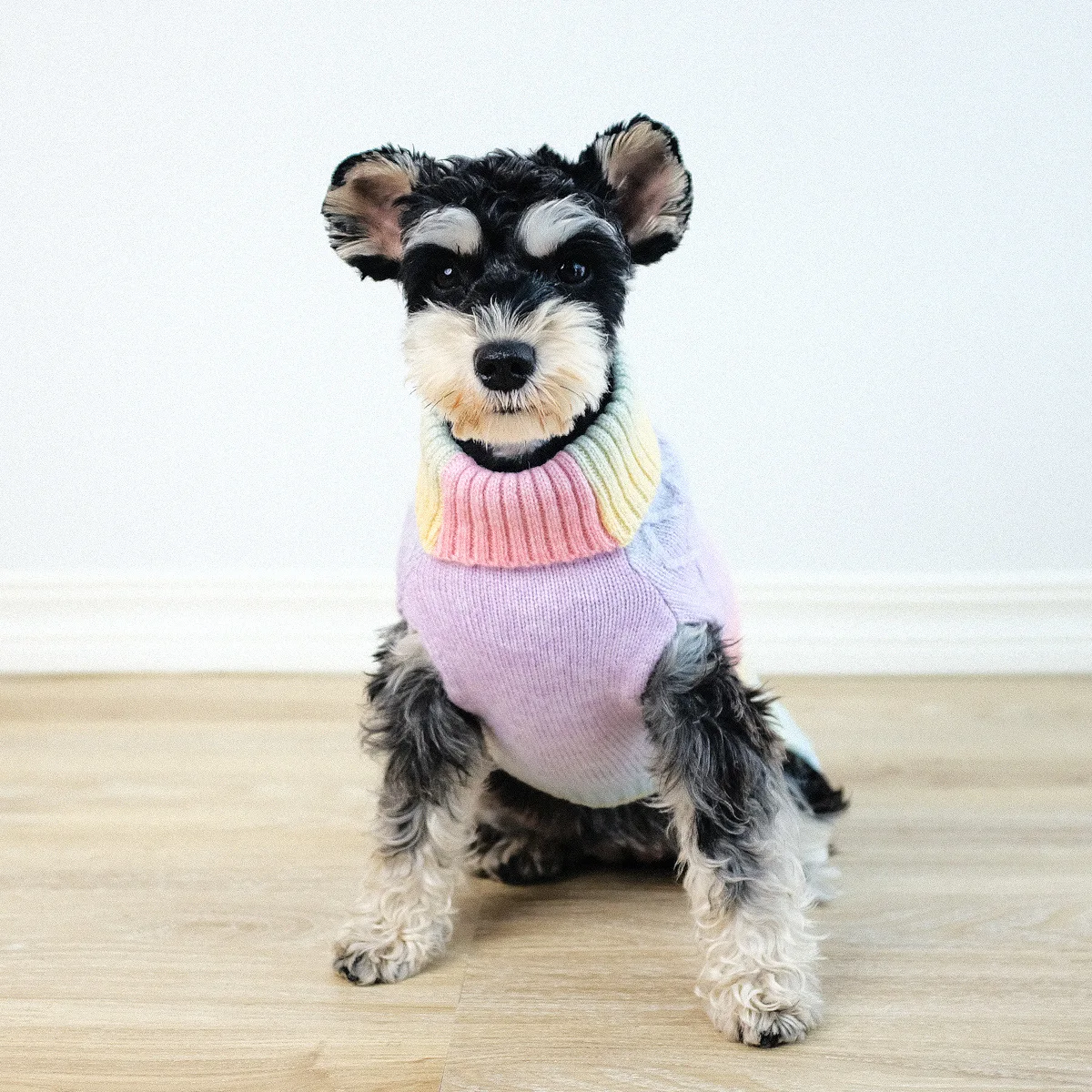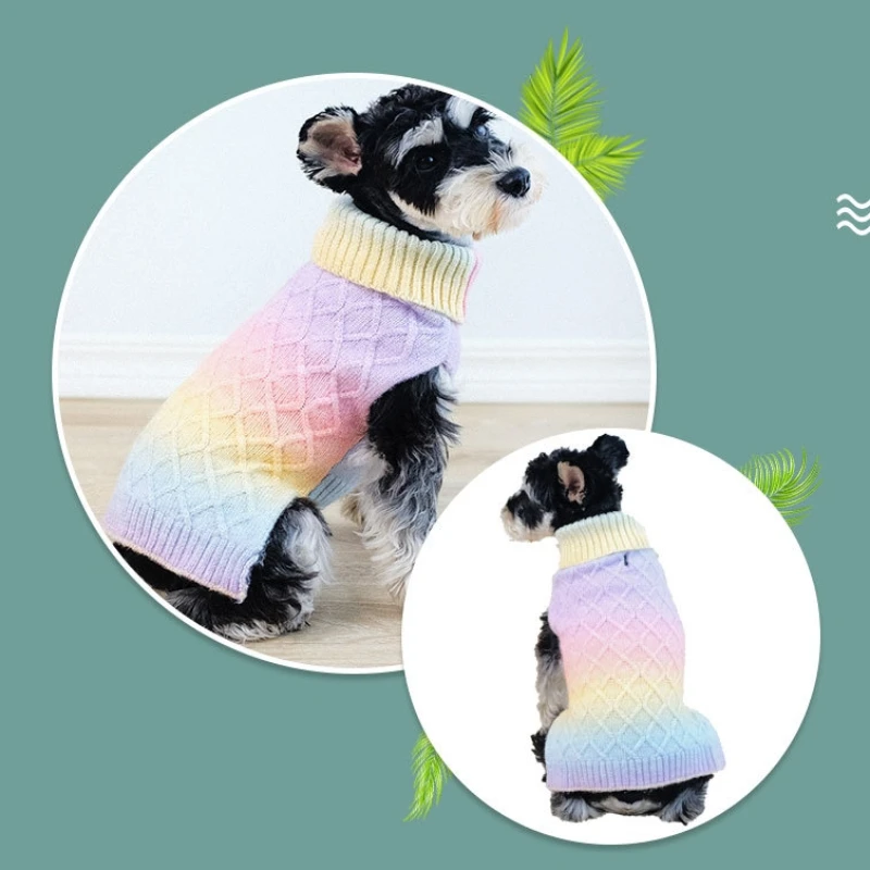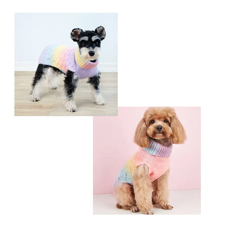 Suéter para mascotas con gradiente de arcoíris, Color caramelo, Otoño/Invierno, suéter cálido para perros pequeños, ropa para perros pequeños