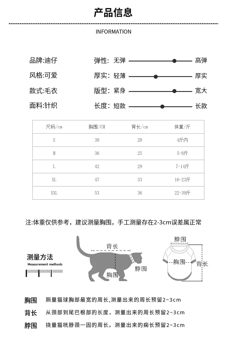 Información sobre el tamaño (CM) S Pecho 30 Espalda 20 M Busto 35 Longitud de espalda 25 L Busto 40 Longitud de espalda 30 XL Busto 45 Longitud de espalda 35 XXL Busto 50 Longitud de espalda 40