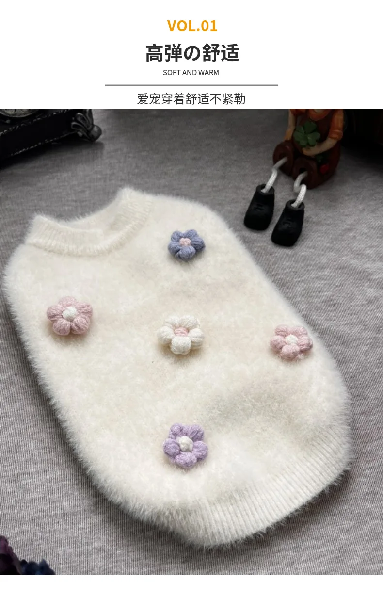 Suéter para mascotas, suéter de flores, ropa bonita para gatos, ropa de invierno para mascotas, abrigo inferior para perros, abrigo de invierno para perros, suéter para perros, ropa para cachorros