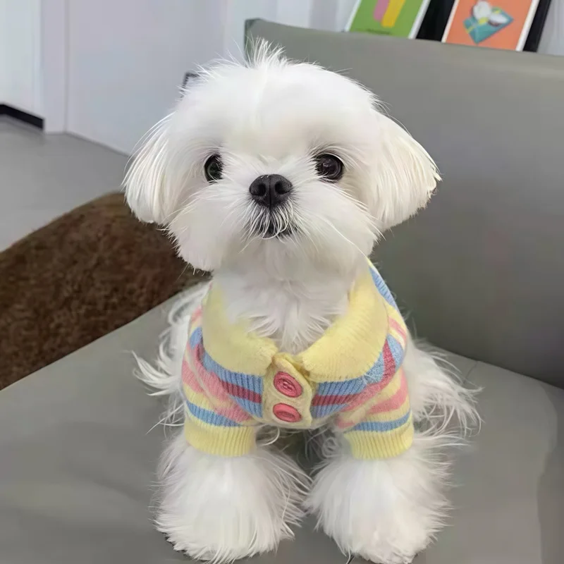 Suéter para mascotas, suéter maltés a rayas amarillas, Jersey cálido de punto de peluche, ropa de invierno para caniche, Jersey suave para cachorros bonitos
