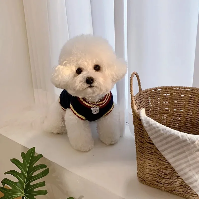 Suéter de moda para mascotas, chaleco tejido para Academia de perros, oso de peluche, pequeño gato, Yorkshire, Pomerania, cachorro pequeño, ropa cálida para cachorros de invierno