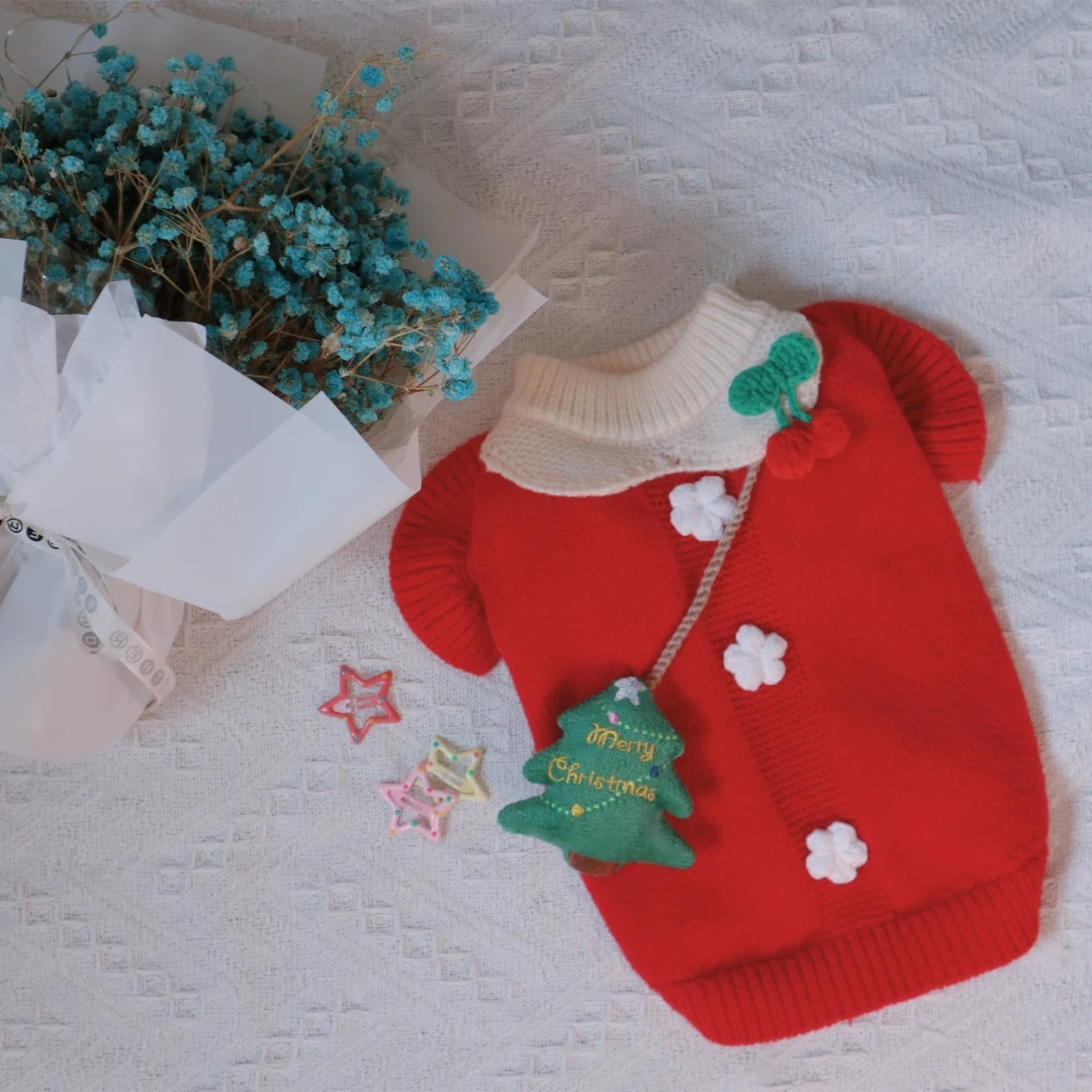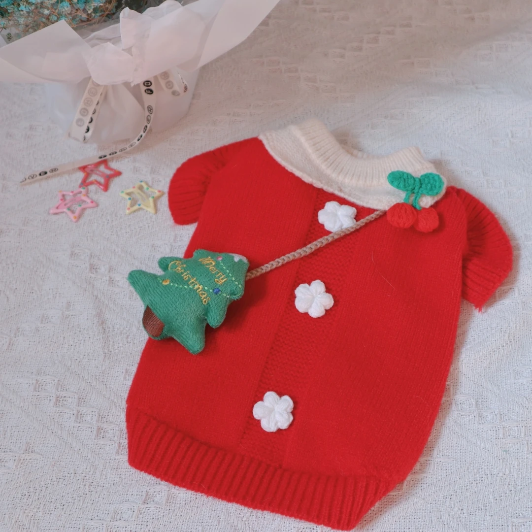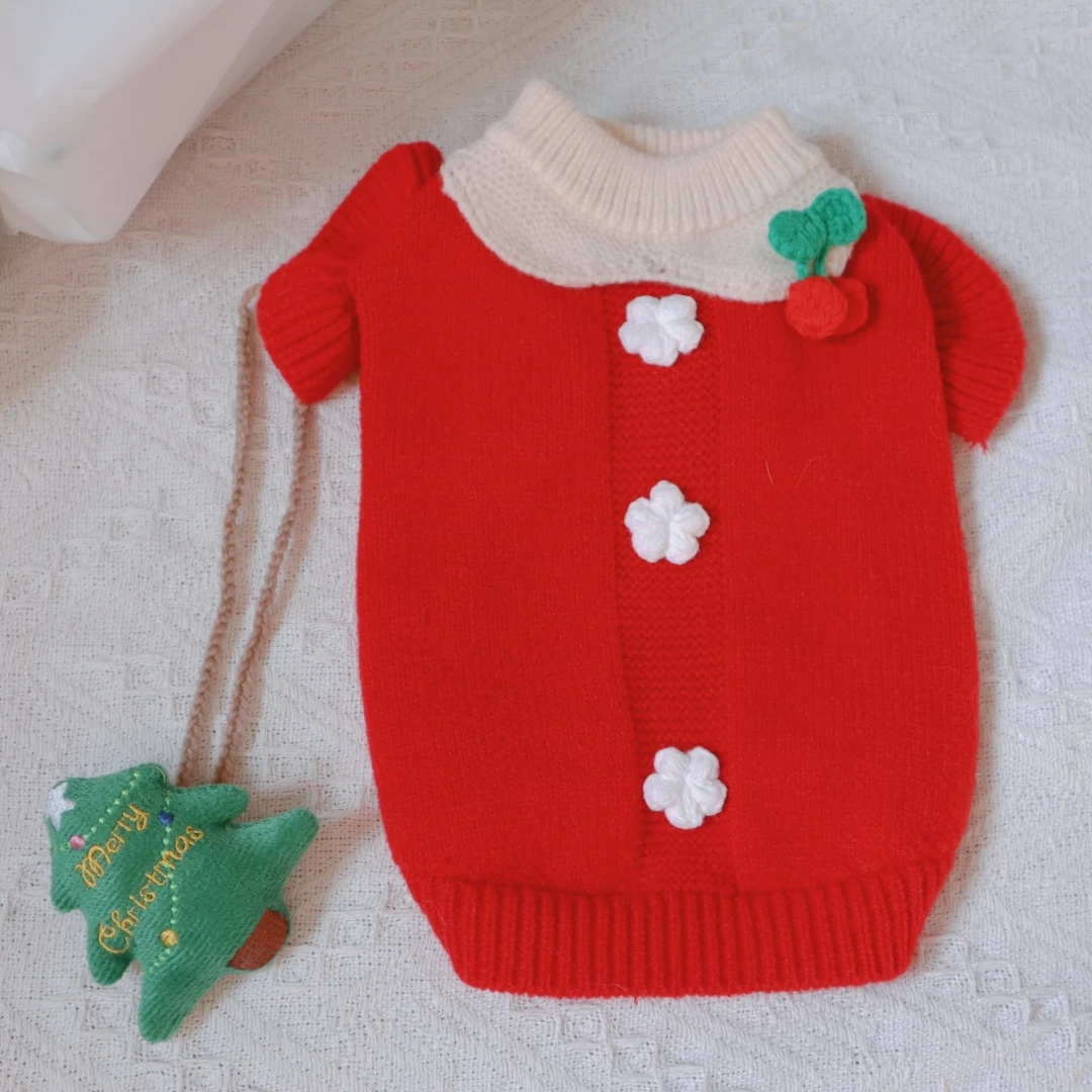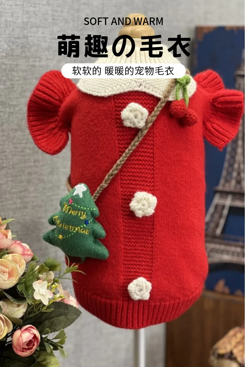 Suéter de Navidad para mascotas, falda estilo princesa, ropa para gatos y mascotas, vestido de punto con mangas voladoras, suéter para perros pequeños y medianos de otoño/invierno