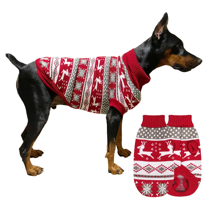 Suéter de Navidad para perros, suéter de punto con copos de nieve y Reno para perros pequeños, medianos y grandes, ropa navideña para mascotas, prendas de punto con cuello alto