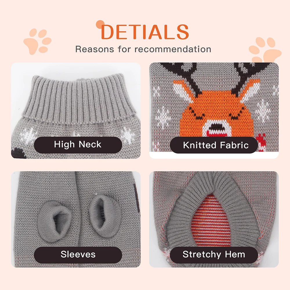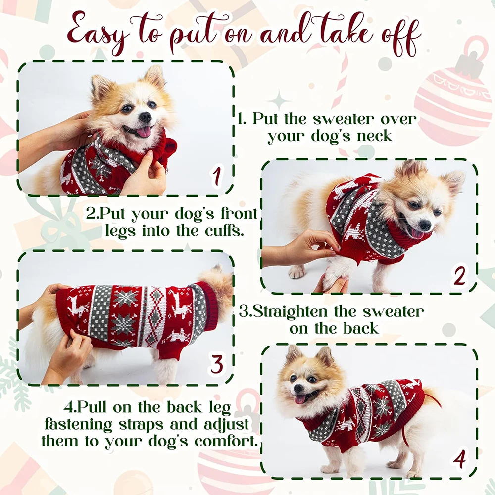 Suéter navideño para perros, suéter para cachorros, suéter navideño navideño con patrón de alce para perros y gatos