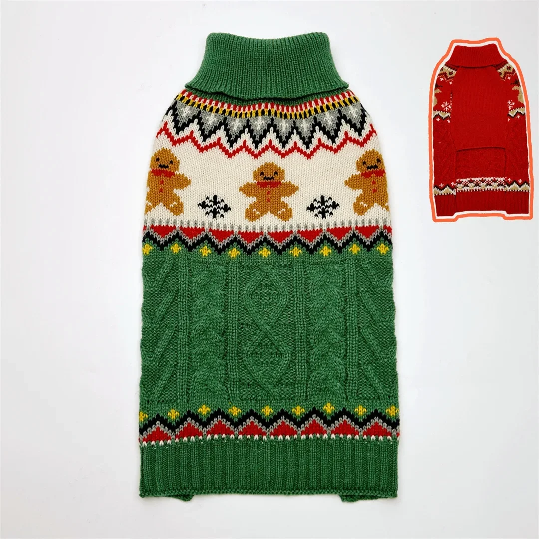 Suéter navideño de reno rojo y verde para mascotas, Jersey de punto cálido para invierno, sudadera, ropa para perros pequeños y medianos y gatos
