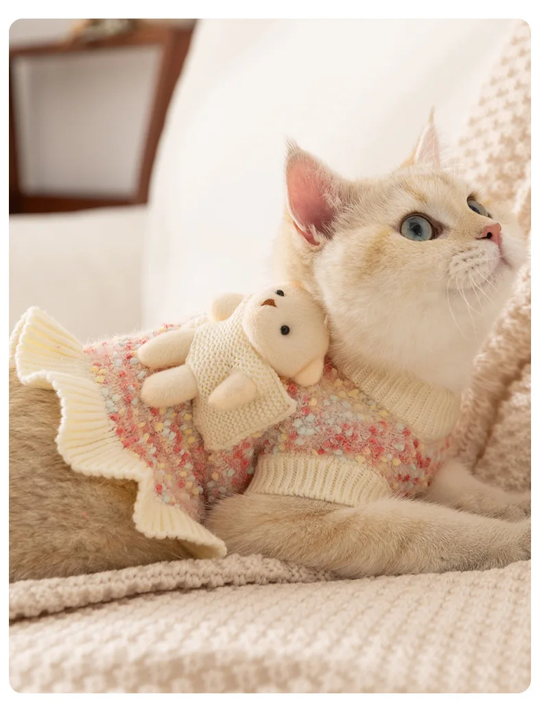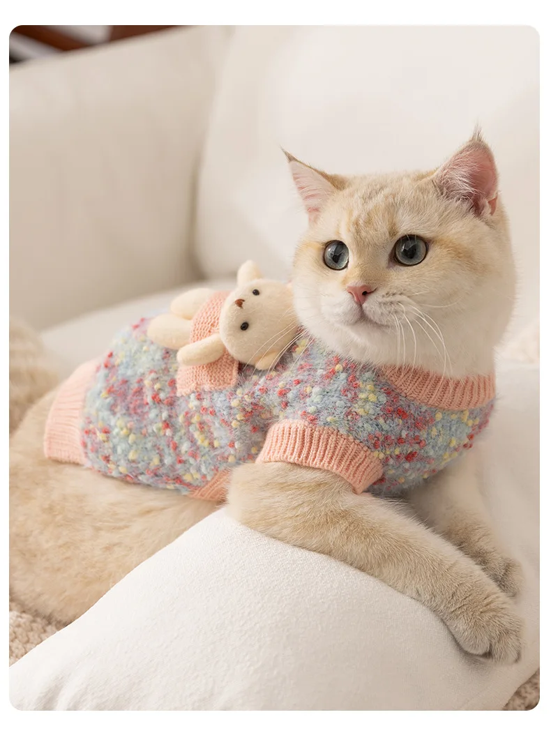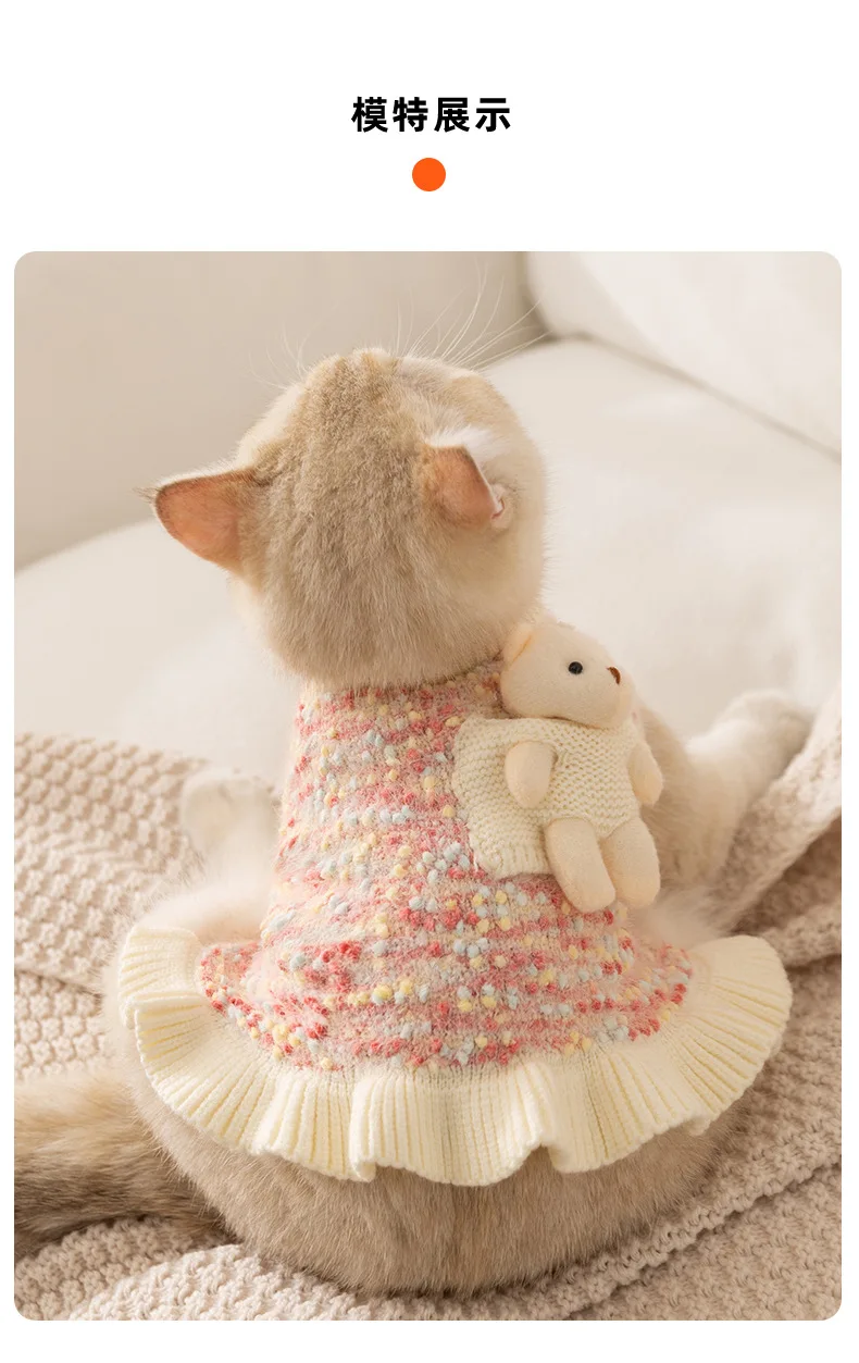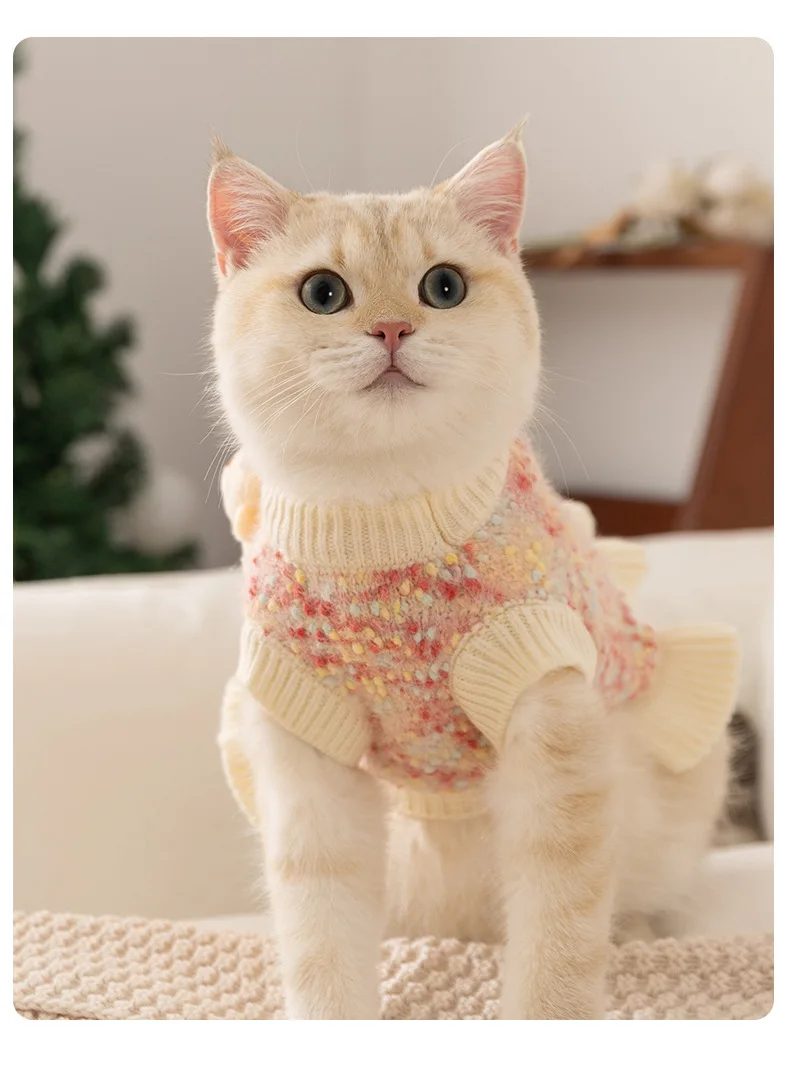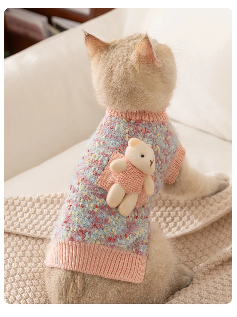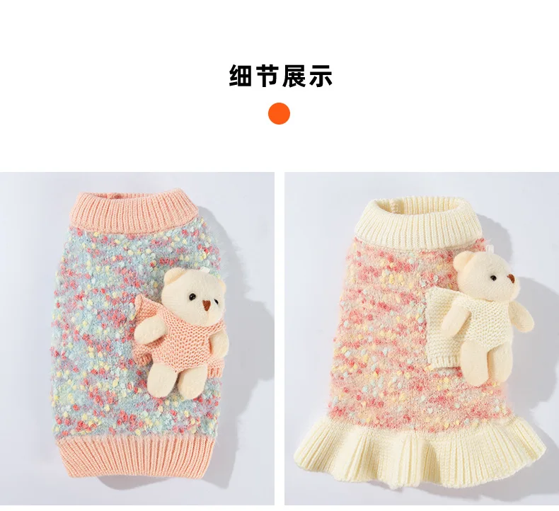 Suéter de peluche para perros pequeños, ropa cálida de invierno con estampado de cereza para mascotas, jersey de punto Bichon, ropa con estampado de fruta maltés