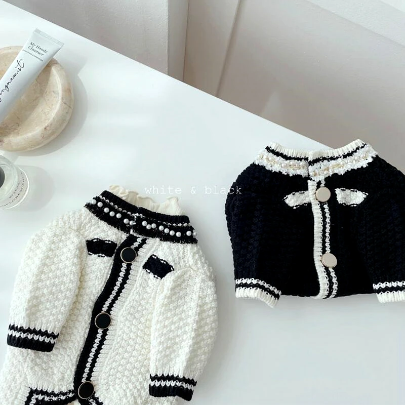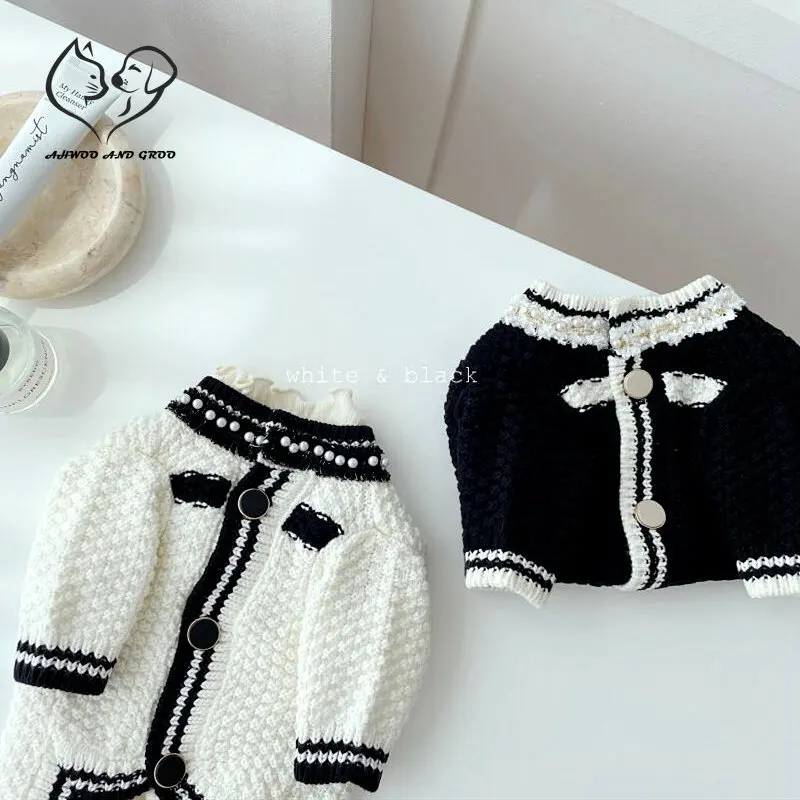 Suéter de punto con botones para mascotas, decoración de perlas cálidas, chaqueta de perro y gato, ropa de peluche Schnauzer de lujo, suministros para mascotas, Otoño e Invierno