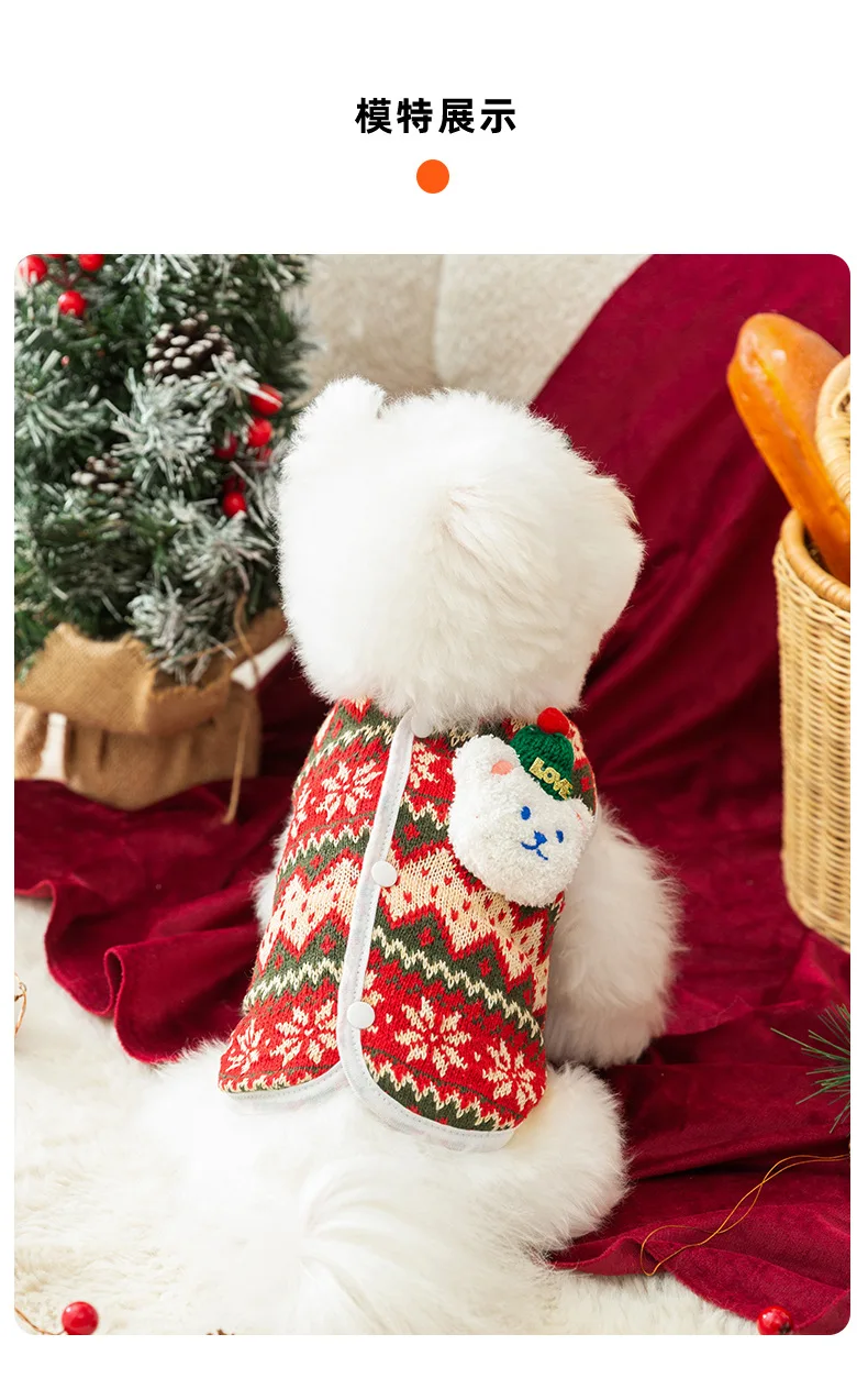 Suéter de punto cálido para perros, cárdigan de oso de peluche tridimensional para cachorros pequeños, ropa para mascotas, Navidad, Otoño e Invierno - imagen 5