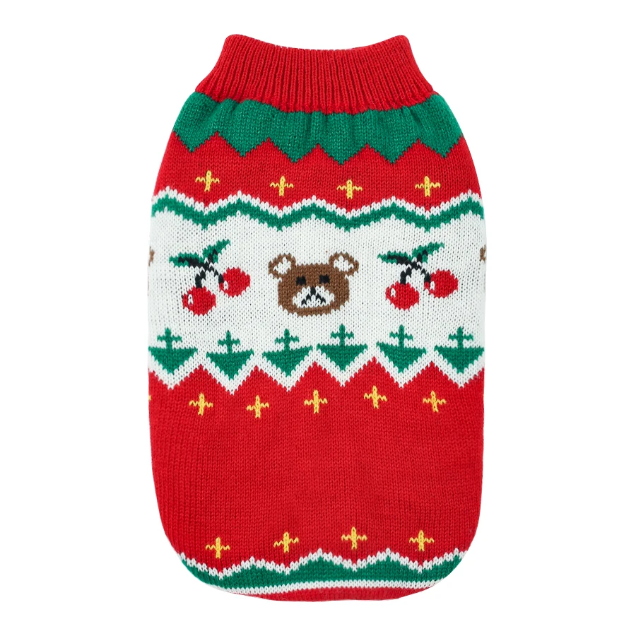 Suéteres de punto rojos con patrones de osos para perros y gatos: ropa cómoda de invierno para variedades pequeñas y medianas