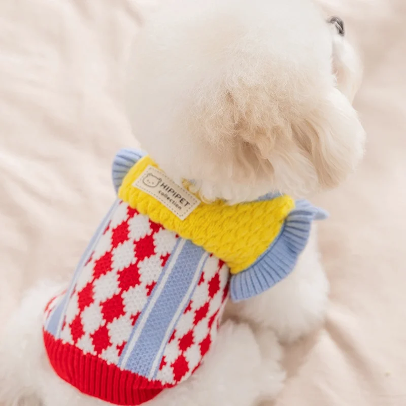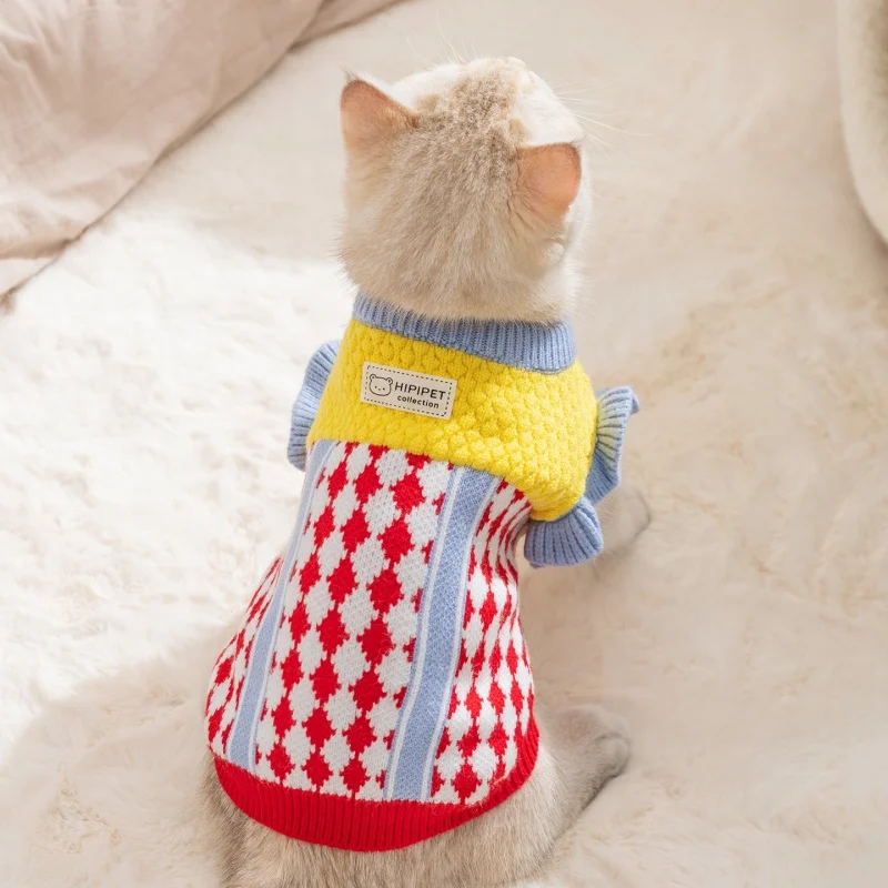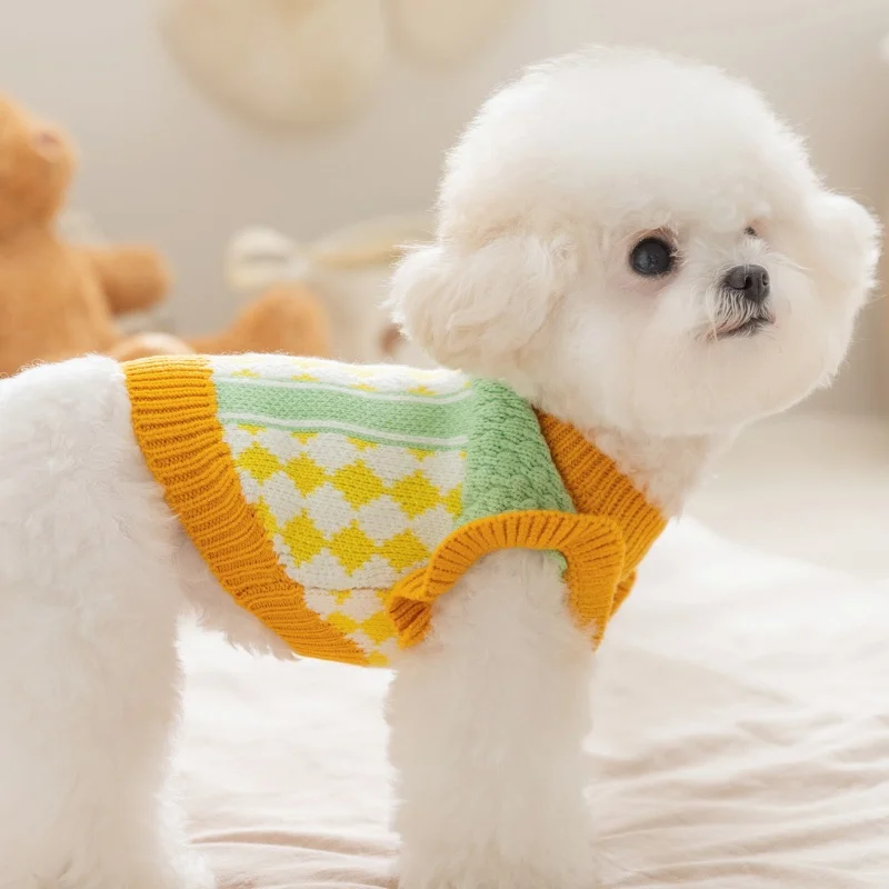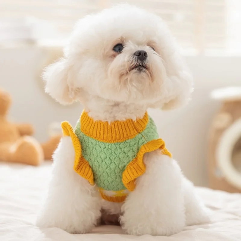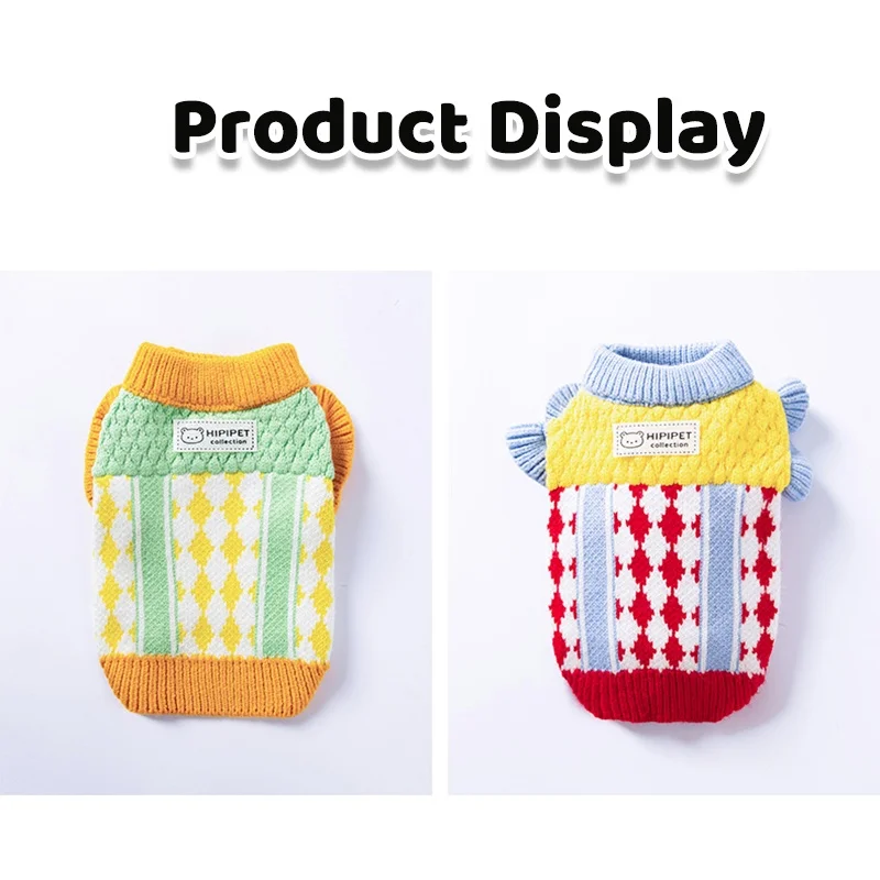 Suéter de punto para perro de invierno, ropa suave y cálida para perro, cuello alto para cachorro a la moda, suéter con estampado bonito para gato, jerséis para mascotas, trajes de Yorkshire