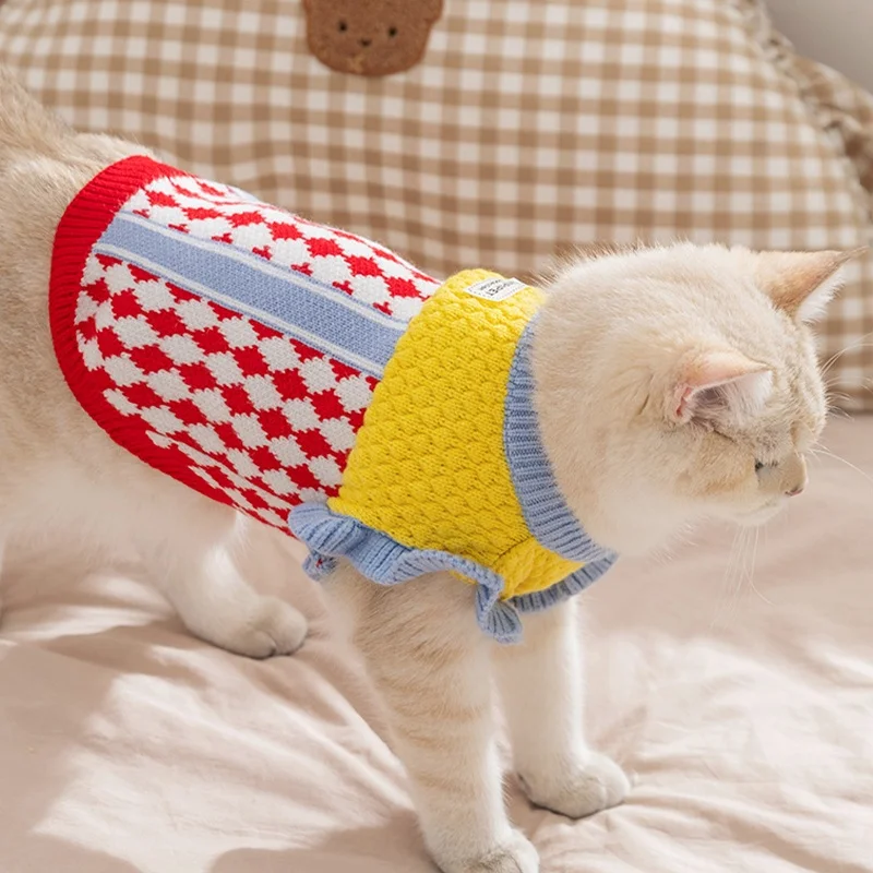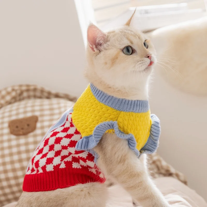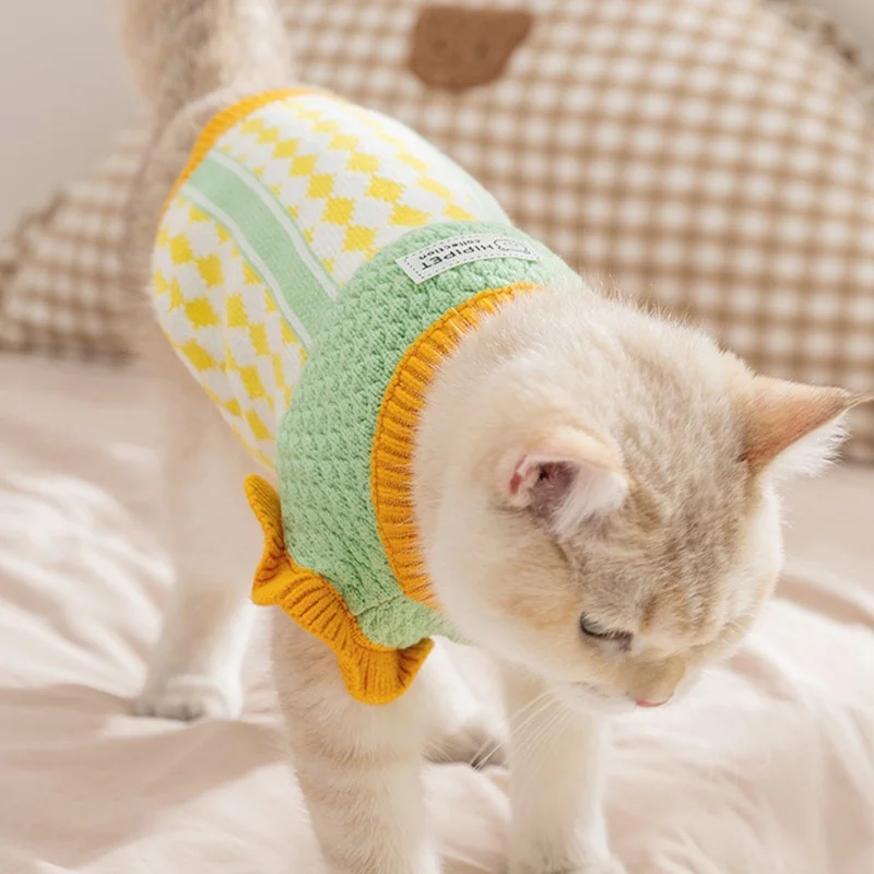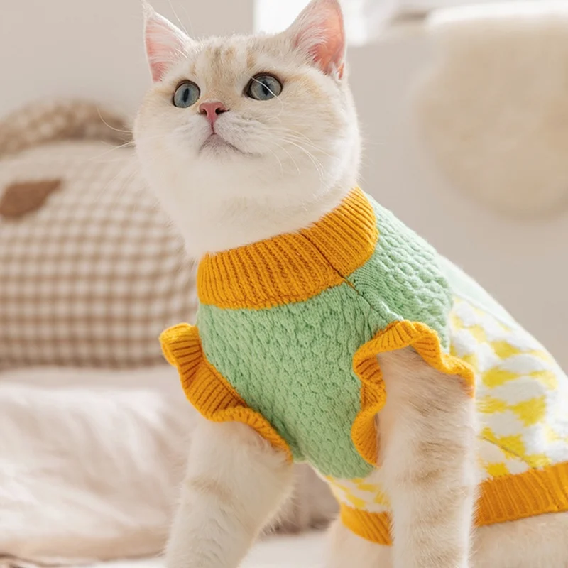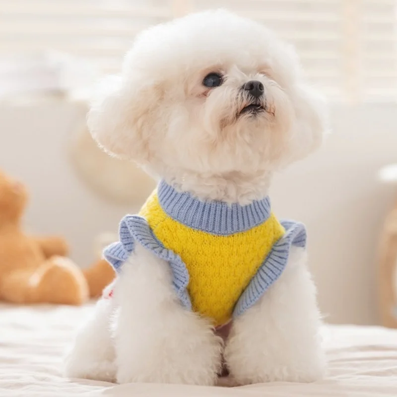Suéter de punto para perro de invierno, ropa suave y cálida para perro, cuello alto para cachorro a la moda, suéter con estampado bonito para gato, jerséis para mascotas, trajes de Yorkshire