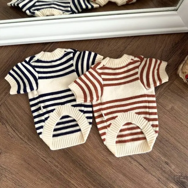 Suéter a rayas para mascotas, abrigo de punto cálido para perros pequeños y medianos, gatos, adecuado para otoño e invierno