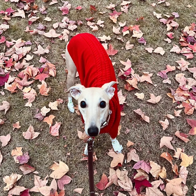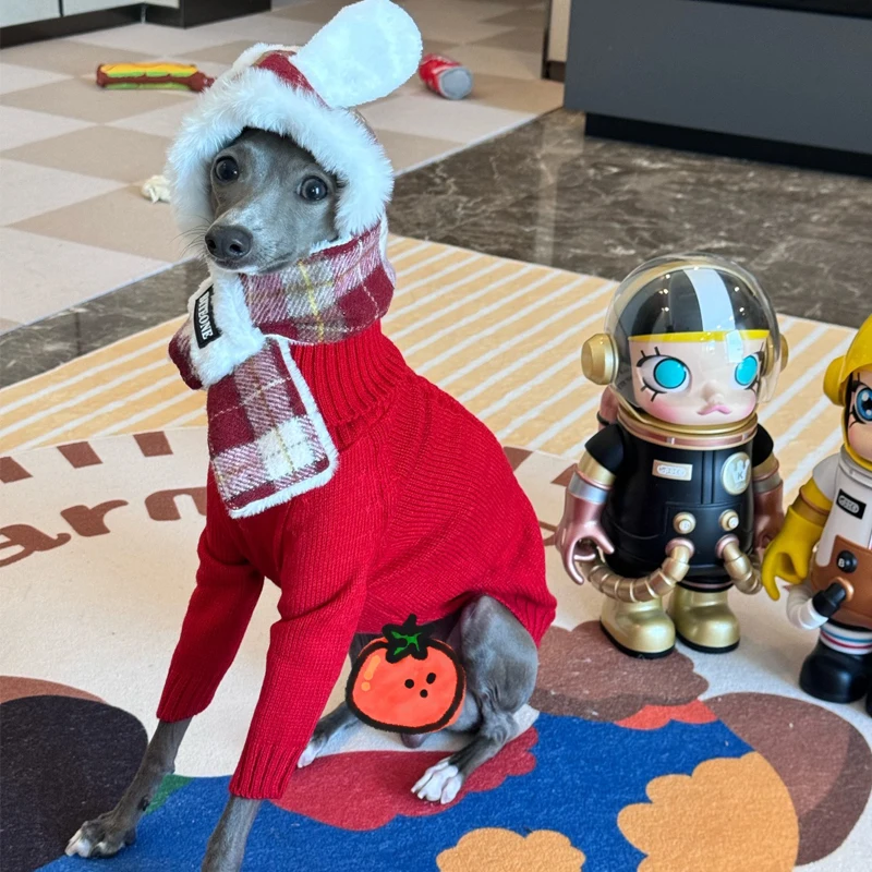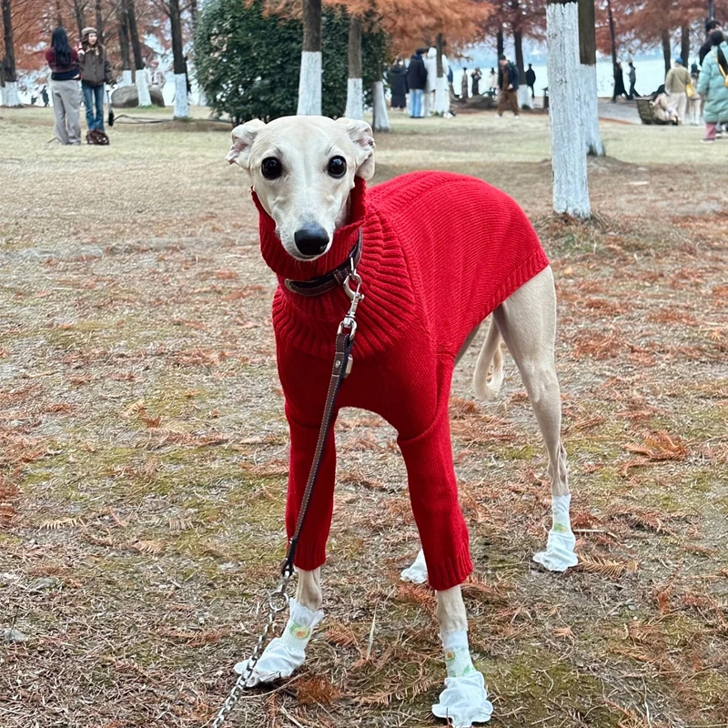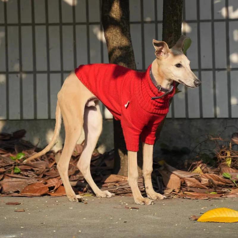 Suéter rojo cálido de invierno con cuello alto para galgo italiano, abrigo de punto de 2 patas para Whippet, ropa de descanso de Año Nuevo para perros medianos