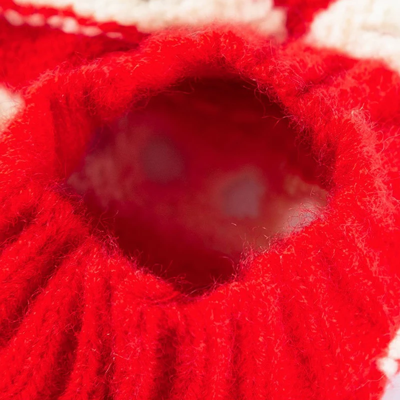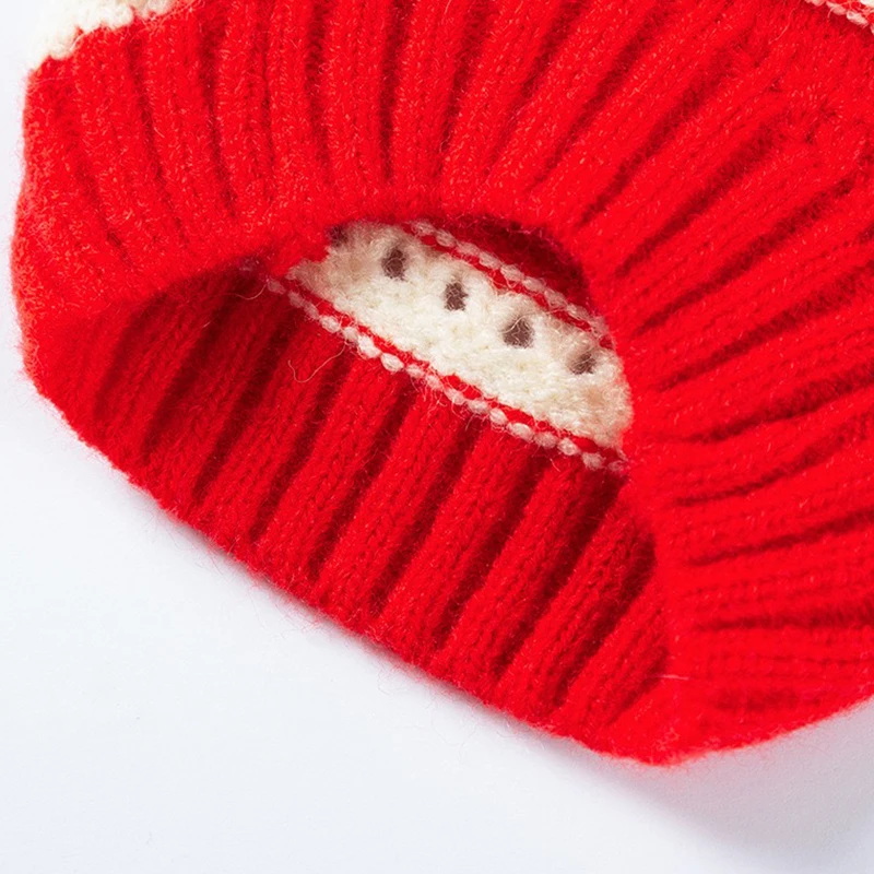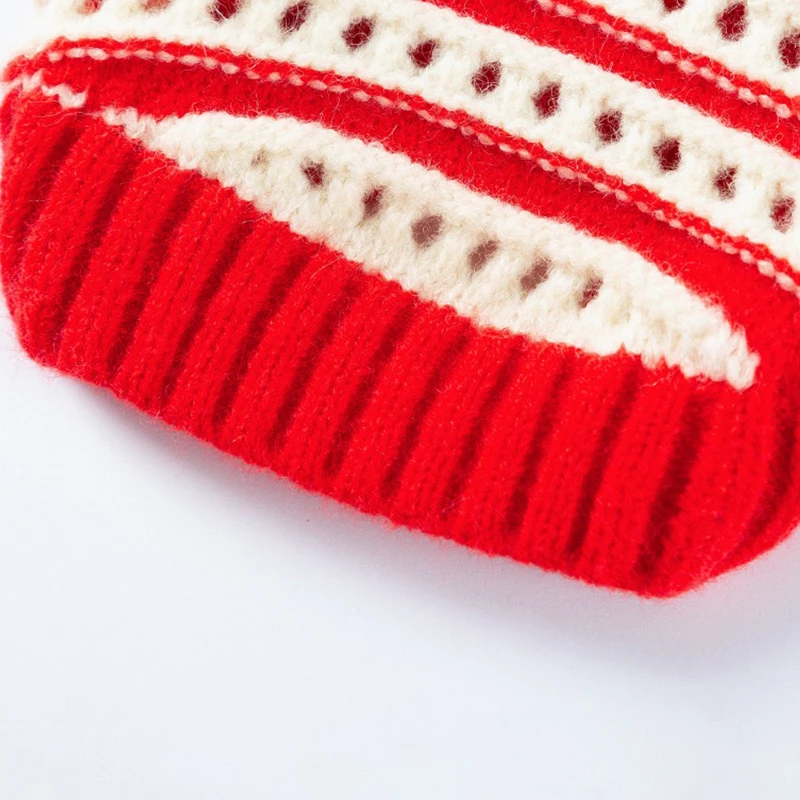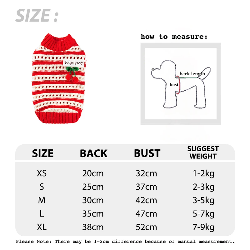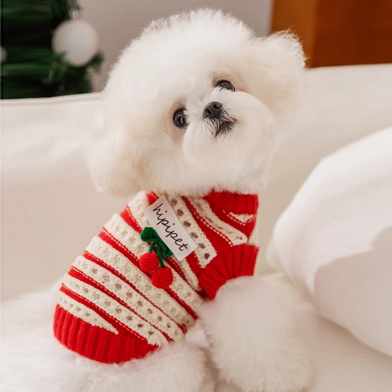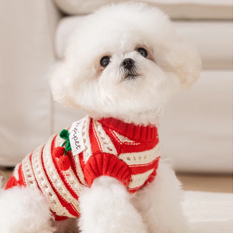 Suéter rojo hueco para perros de compañía, tejido de lana, trajes cálidos Unisex de Bulldog Francés, decoración de cereza, ropa transpirable para gatos al aire libre