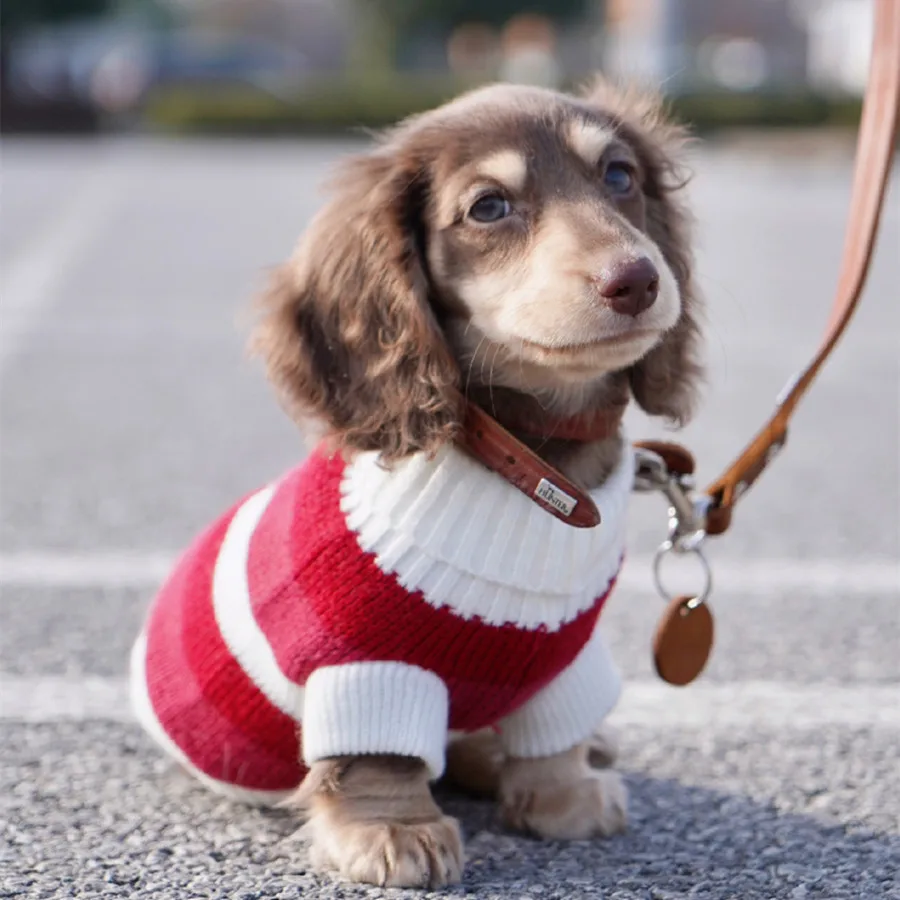 Suéter rojo de invierno para perros Wiener, abrigo suave de 2 patas tejido a mano para perros Dachshund, ropa de descanso navideña para perros de tejón
