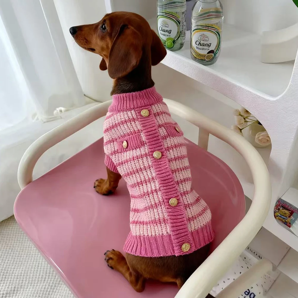 Elegante suéter rosa para mujer Wiener Dogs Chaqueta cárdigan de invierno para tejón Dulce chaleco cálido de manga corta para perros Dachshund