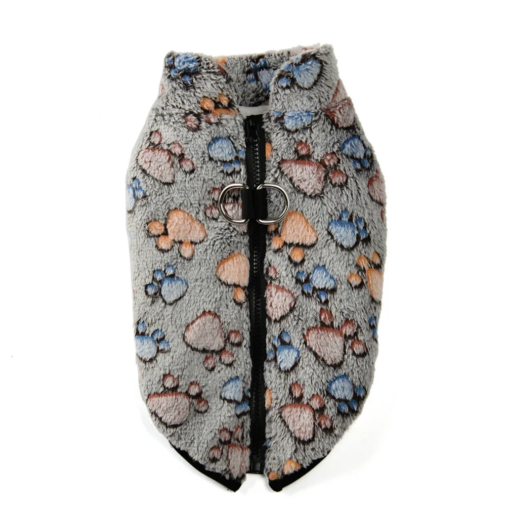 Suéter suave para mascotas para invierno, abrigo cálido de lana para perros pequeños y medianos, chaqueta bonita con estampado de pata para mascotas, trajes para Bulldog Beagle Pug