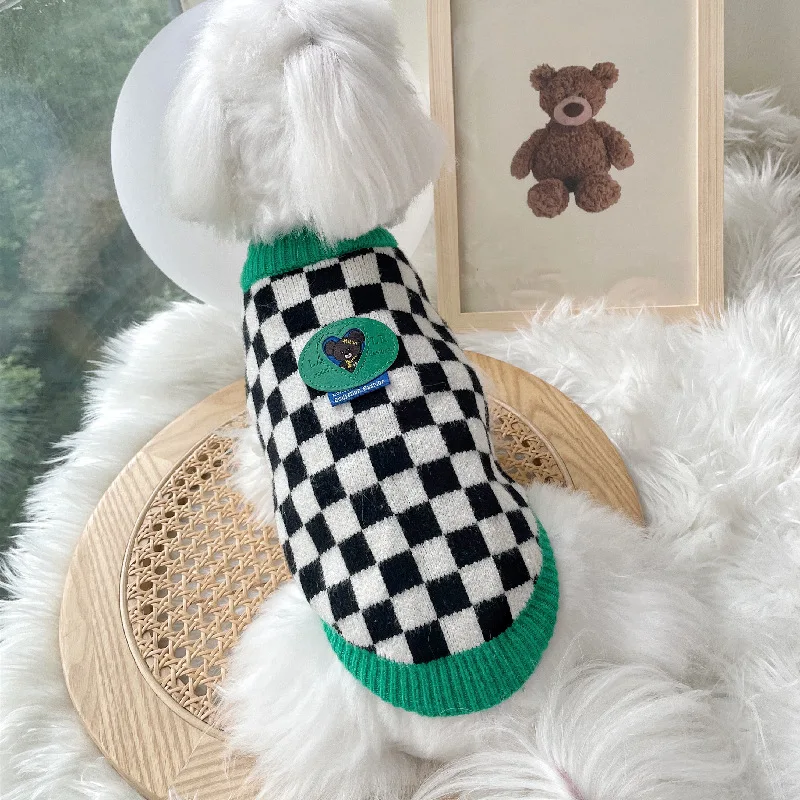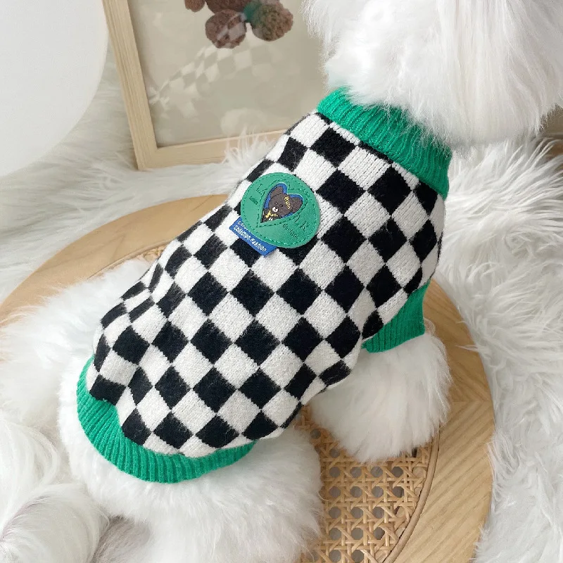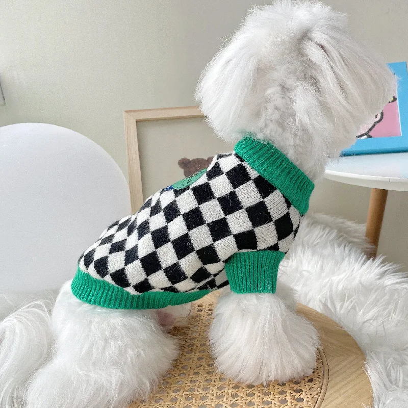 Suéter de tablero de ajedrez blanco y negro, ropa para perros, Teddy Yorkshire Schnauzer, gato maltés, Perro pequeño, Otoño Invierno, suéter cálido para perros