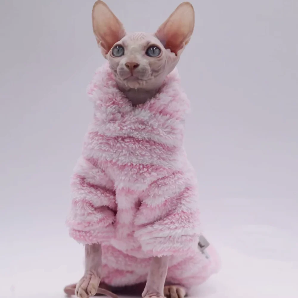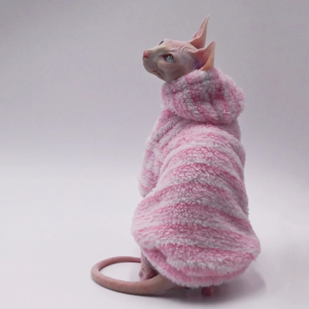 Suéter de vellón con capucha para gatos en invierno Abrigo grueso de color rosa cálido para sphyinx Sudadera dulce de gato gatitos sudadera de perros Ropa de abrigo
