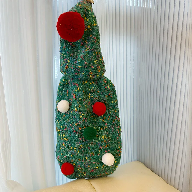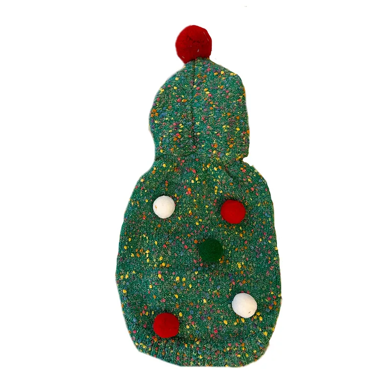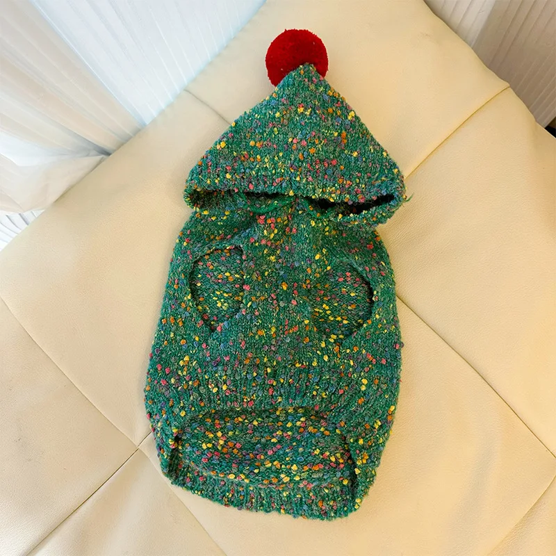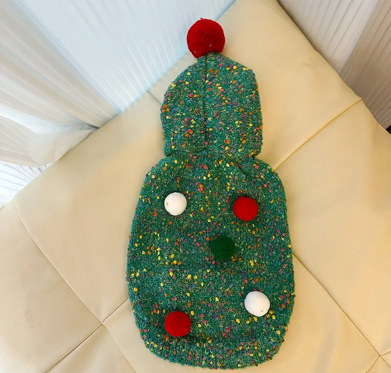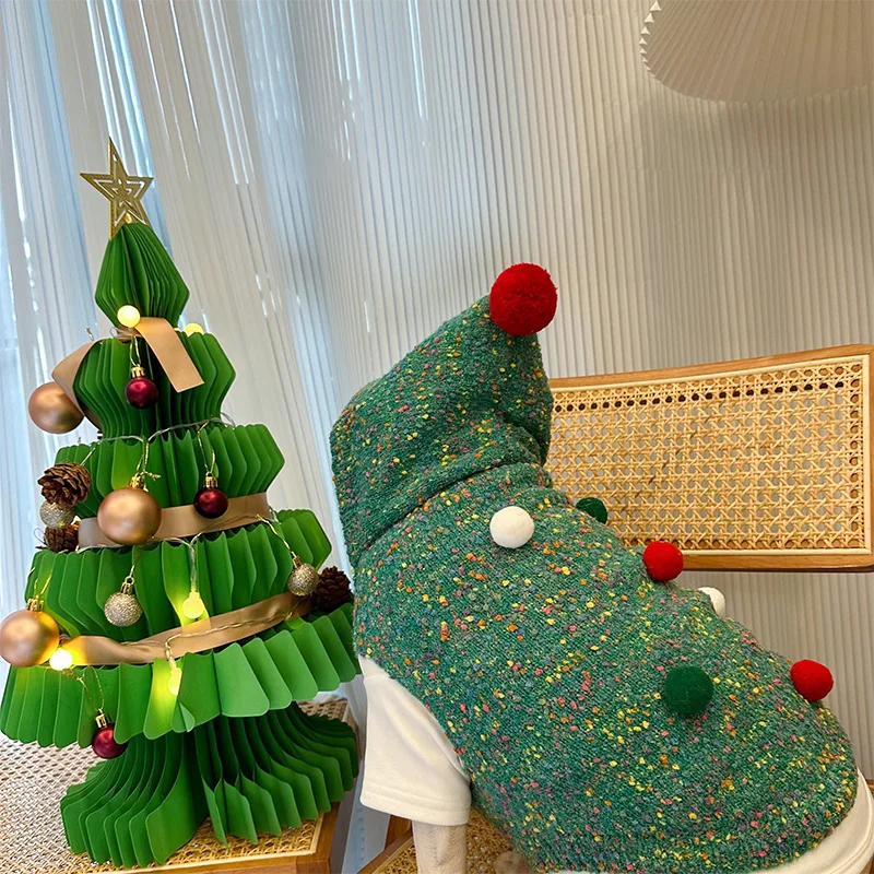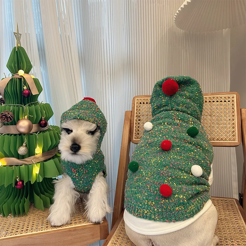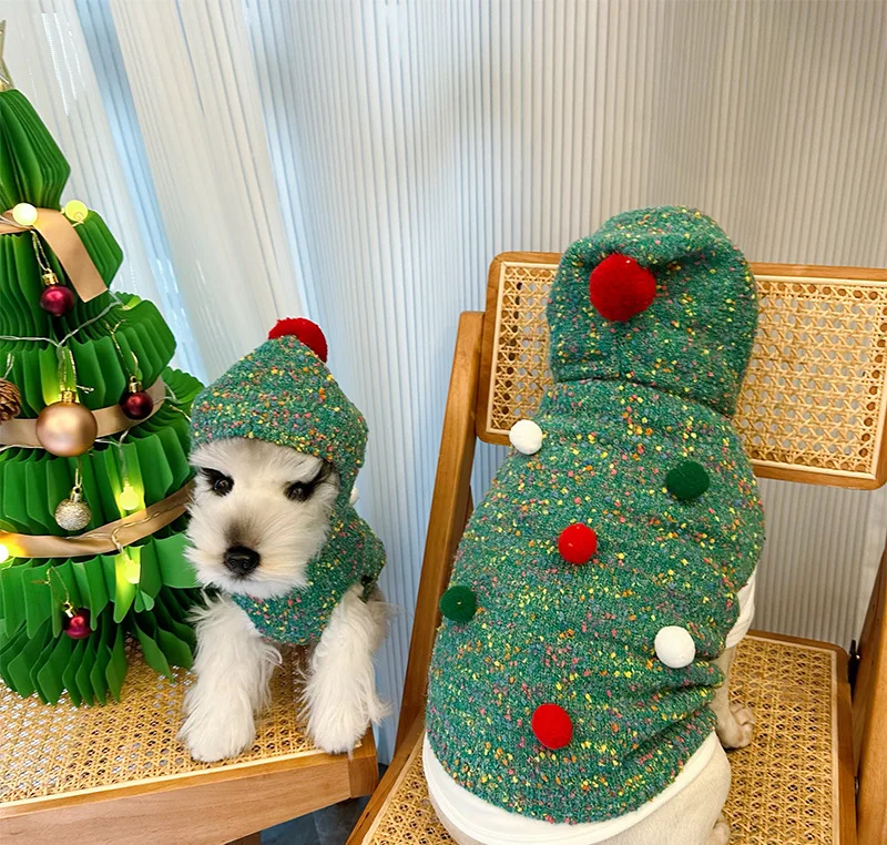 Suéter verde con árbol de Navidad para mascotas, Sudadera con capucha navideña cálida para otoño/invierno, abrigo para perros pequeños con corazón en la espalda, ropa para cachorros pequeños