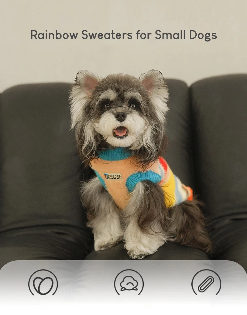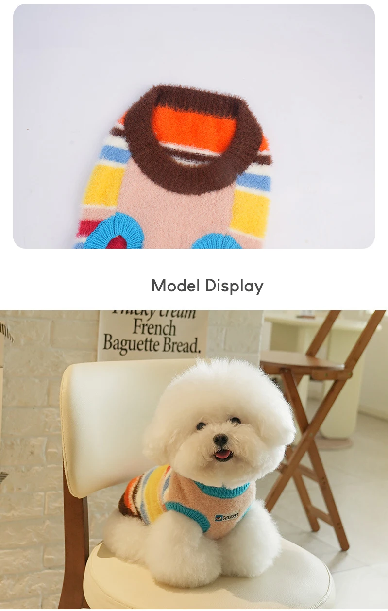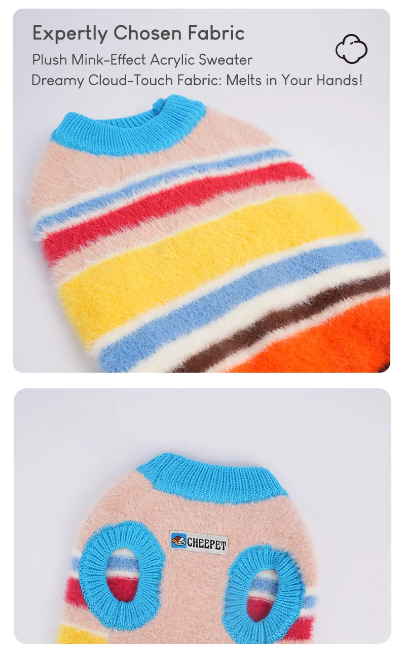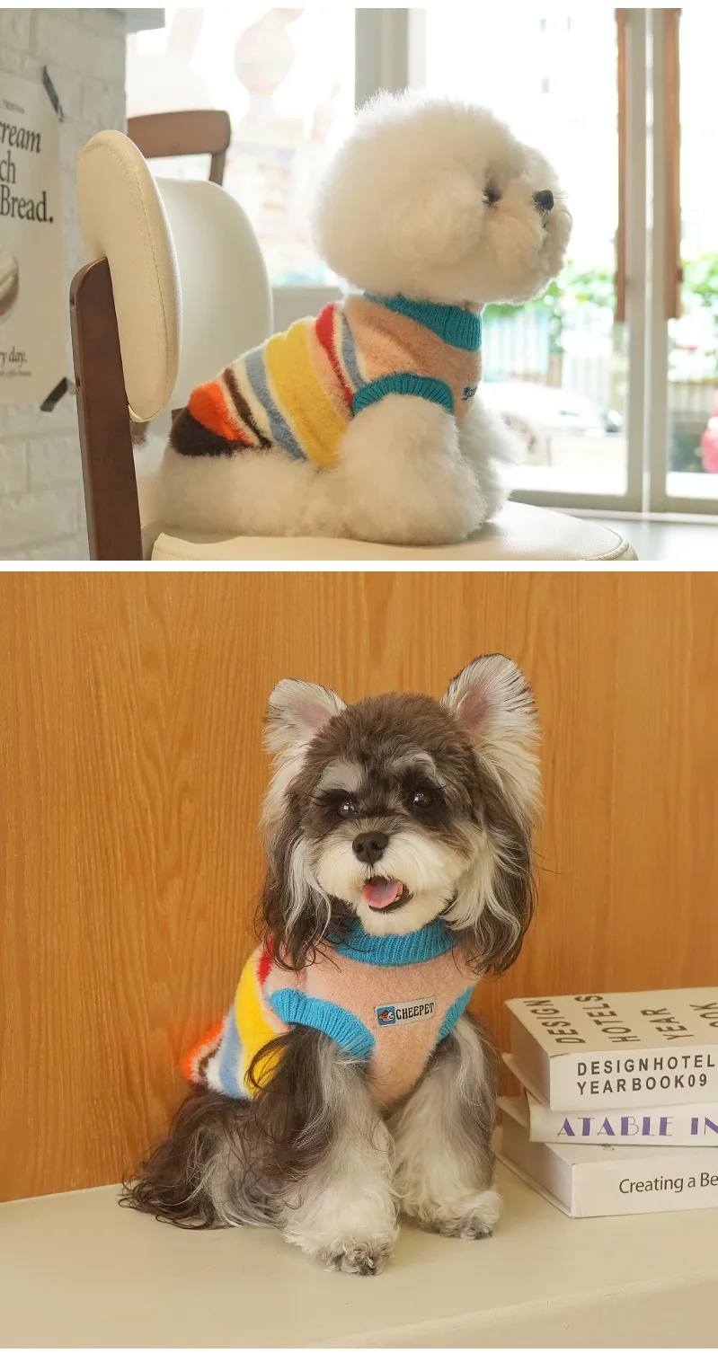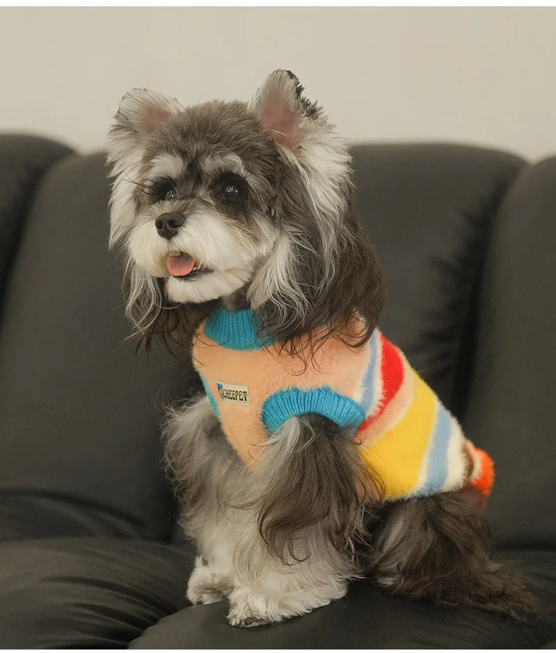 Suéteres de arcoíris para perros, suéteres suaves y cálidos de imitación de visón para mascotas, traje de otoño e invierno para perros pequeños, prendas de punto para cachorros, ropa bonita para gatos