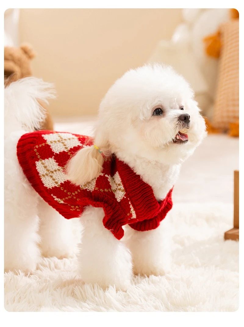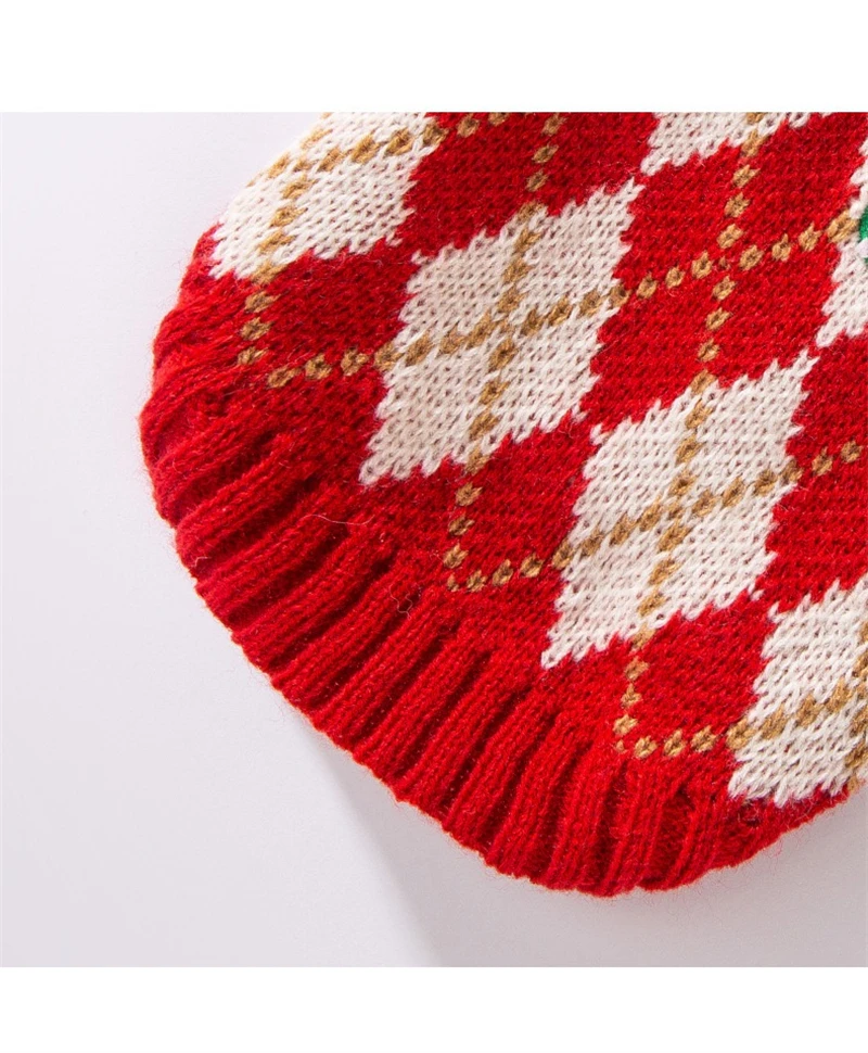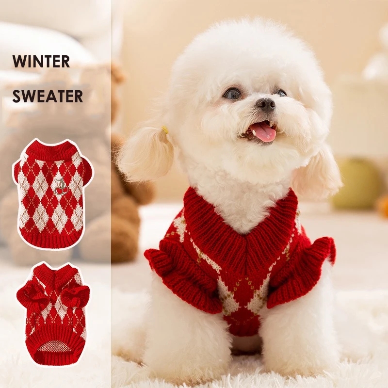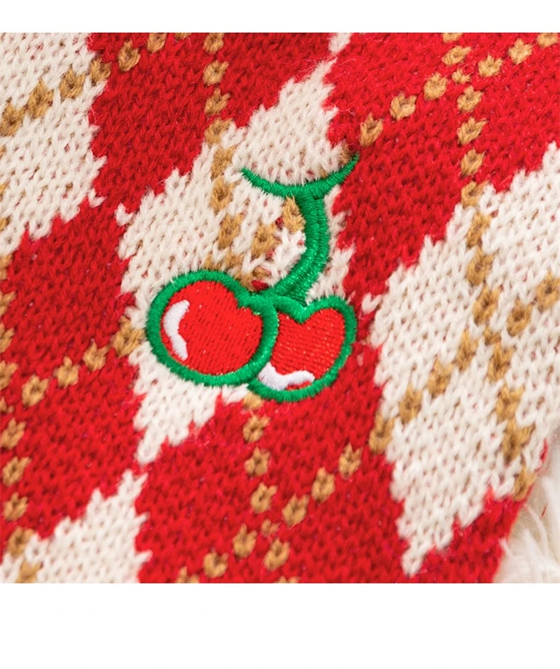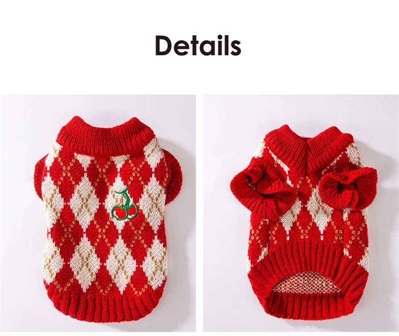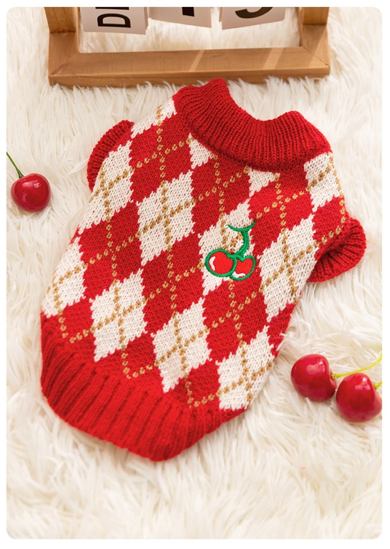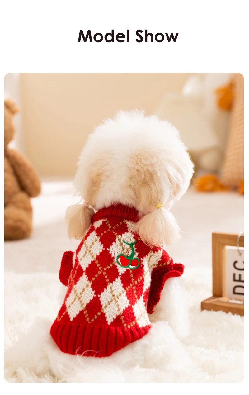 Suéteres bordados de cereza para perros pequeños y medianos, ropa de invierno de Navidad y Año Nuevo para gatos, monos de lana para mascotas, Chihuahua