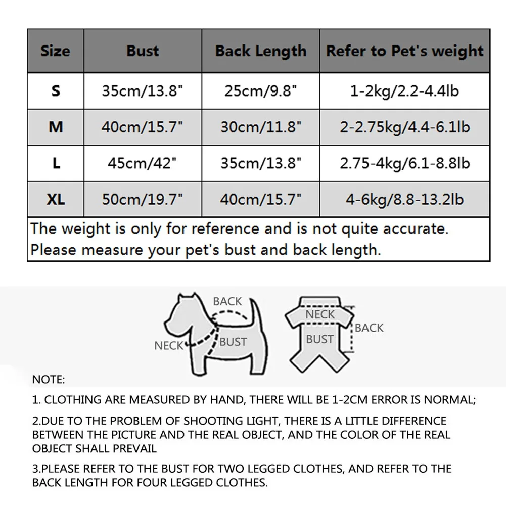 * No elija la talla según su talla habitual. Mida la longitud de la espalda y la circunferencia del pecho de su mascota y consulte la información sobre la talla antes de comprar. Si su mascota está creciendo, elija una talla más.