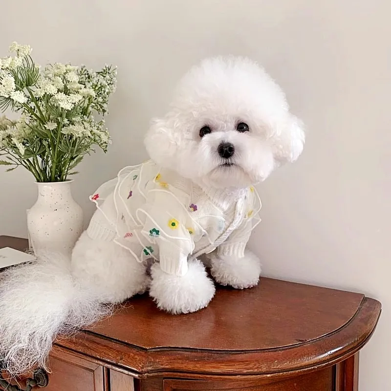 Suéteres para perros pequeños, ropa de lujo con encaje tejido para perros, abrigo para gatos, suéter para cachorros, disfraz de Chihuahua Bichon Yorkie, cárdigan para perros