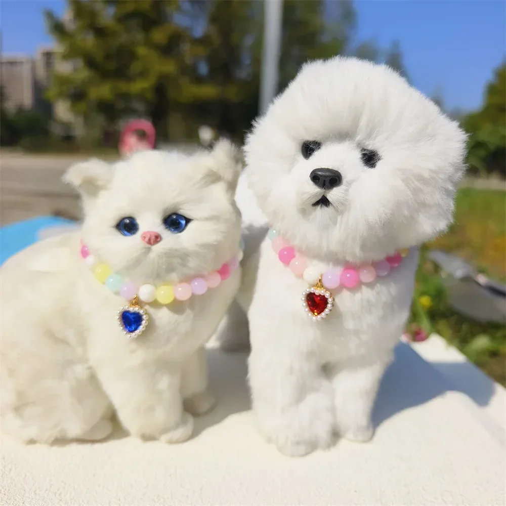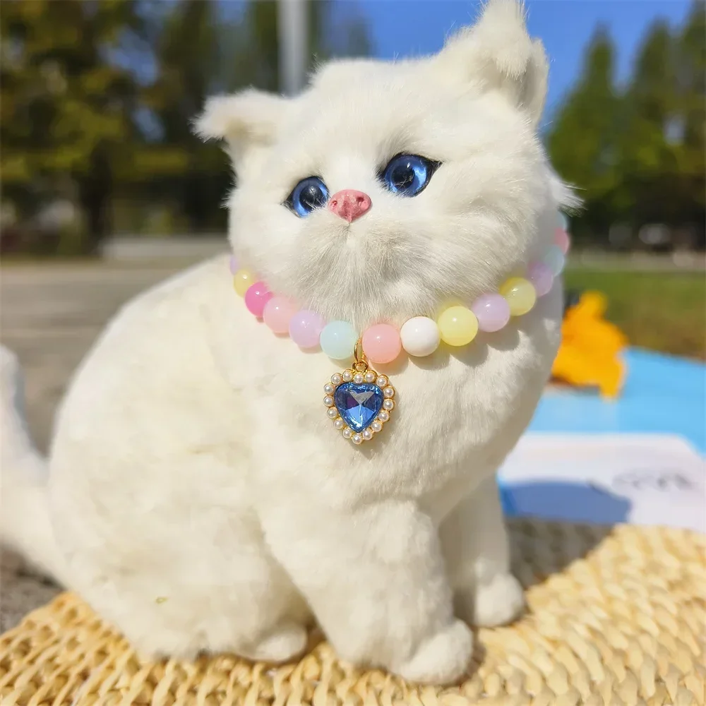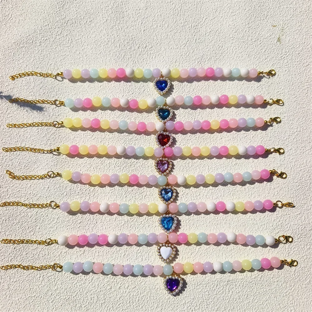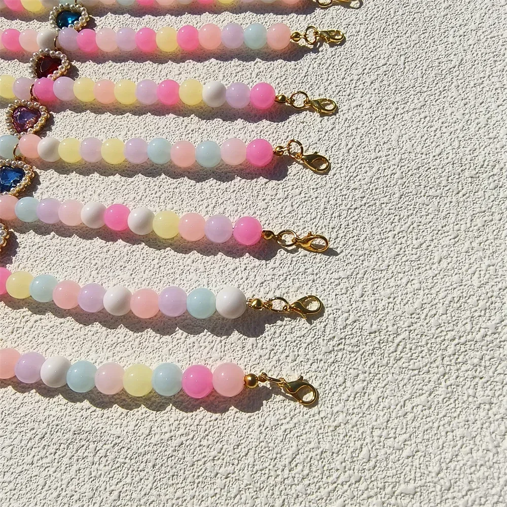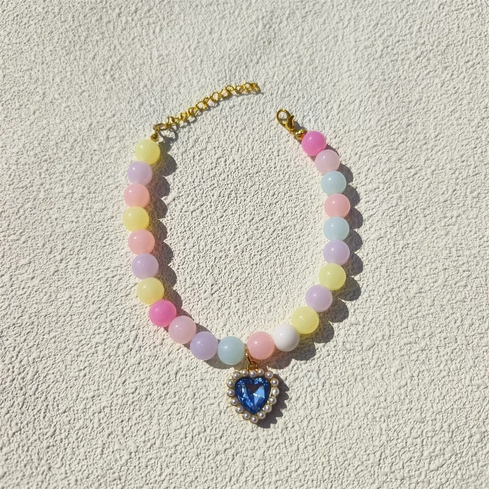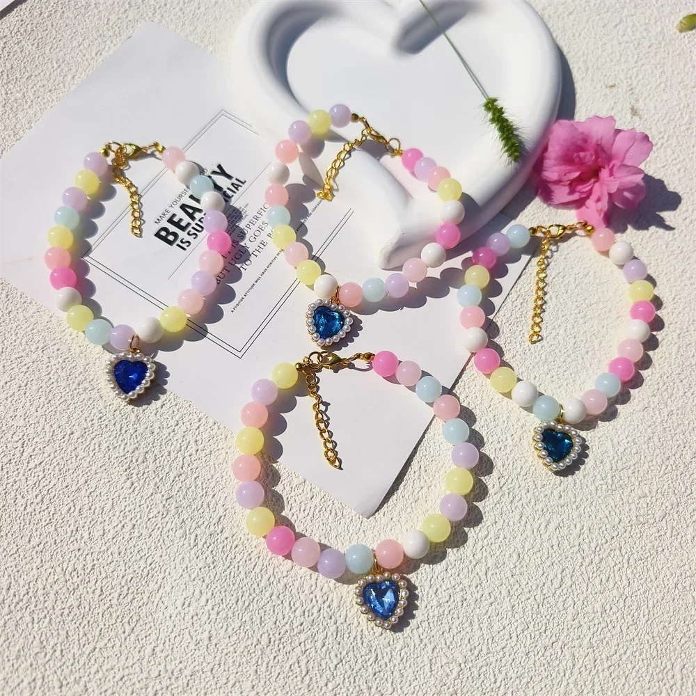 Suministros de adornos bonitos, Collar de perlas de colores gelatinosos con colgante de perlas de corazón de melocotón, Collar hecho a mano para cachorro, perro, gato, accesorios