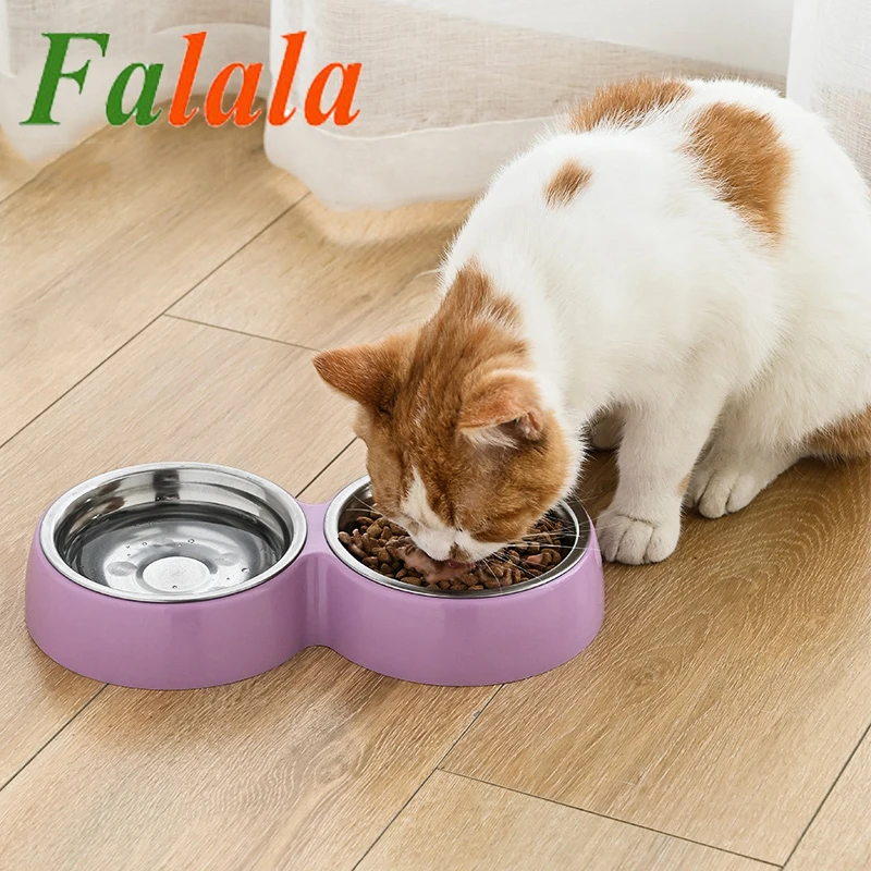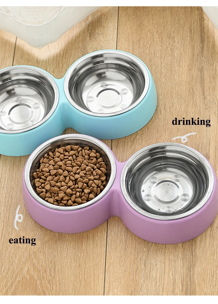 Suministros de alimentación para cachorros y gatitos, cuencos dobles para comida de perro, alimentador de agua de acero inoxidable, plato para beber para mascotas, accesorio para perros pequeños
