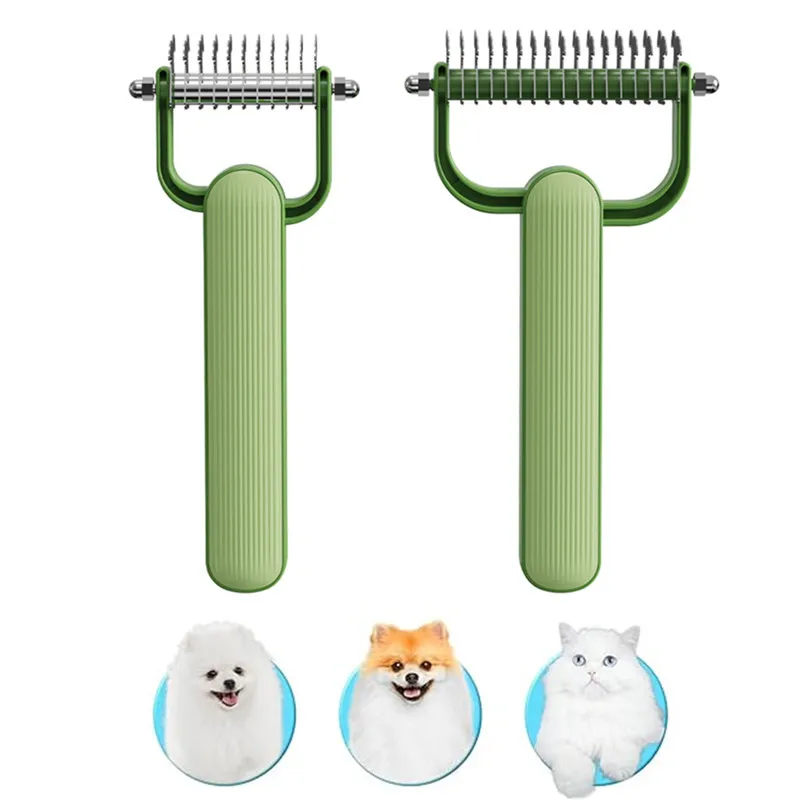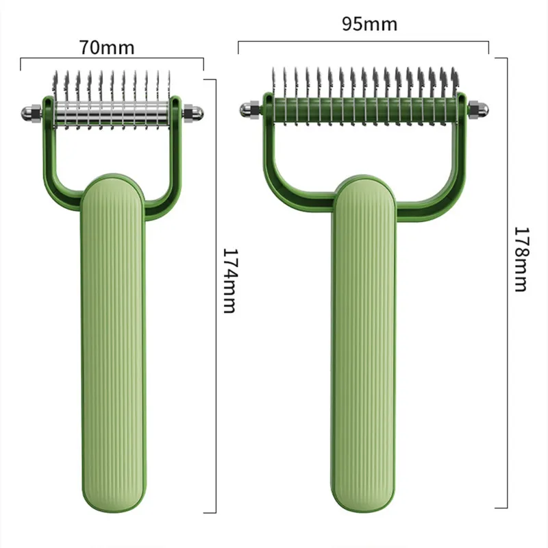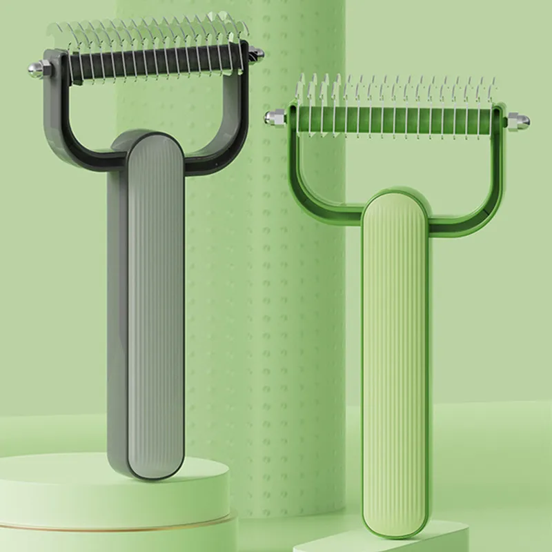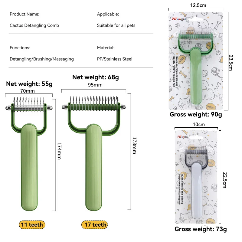 Estos suministros para el cuidado de mascotas cuentan con un diseño profesional 2 en 1, que combina un rastrillo para la capa interna y un cepillo para mascotas para un control eficiente de la caída.