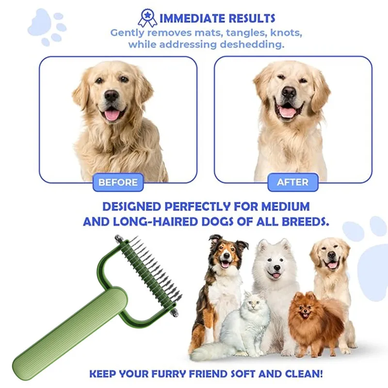 Perfecta para perros y gatos de pelo largo, esta herramienta elimina eficazmente el pelo suelto y la capa interna, manteniendo el pelaje de su mascota sano y brillante.