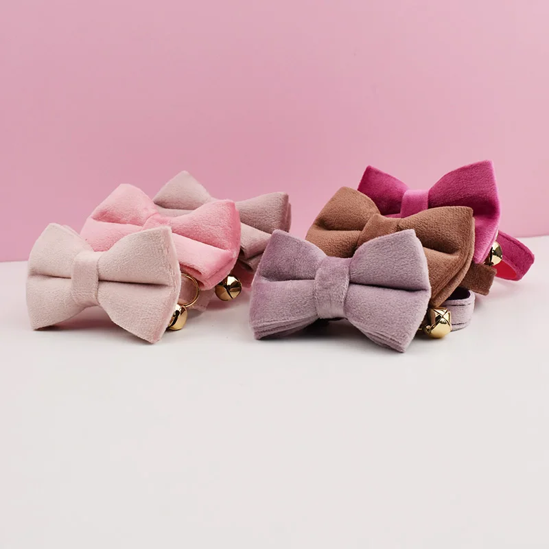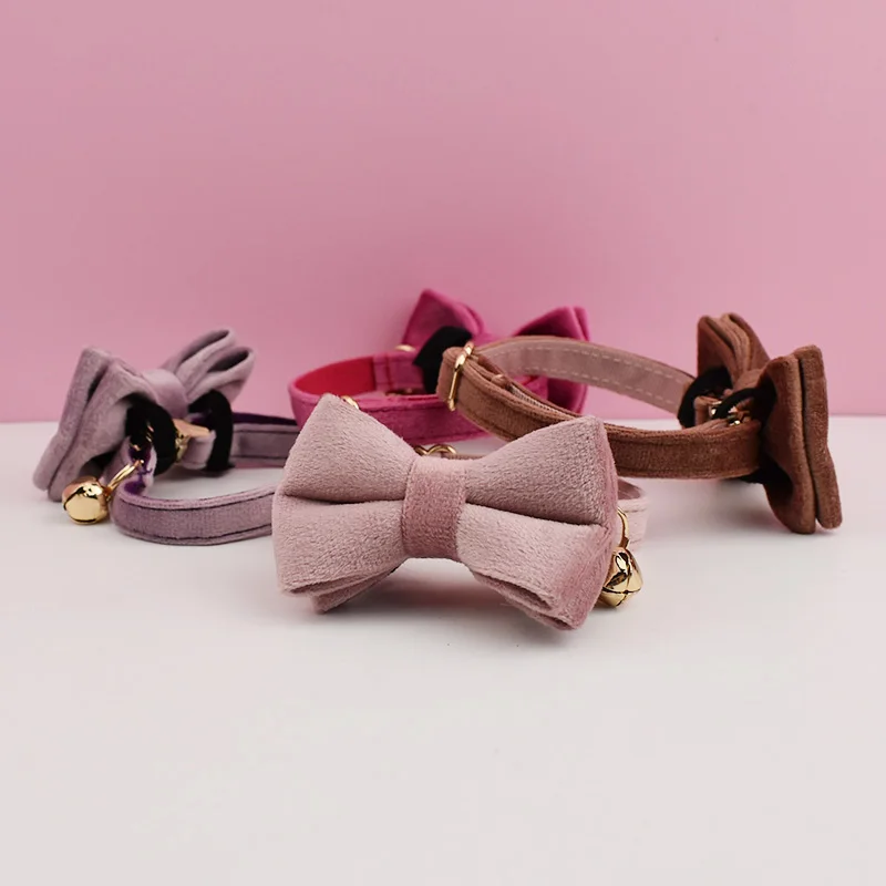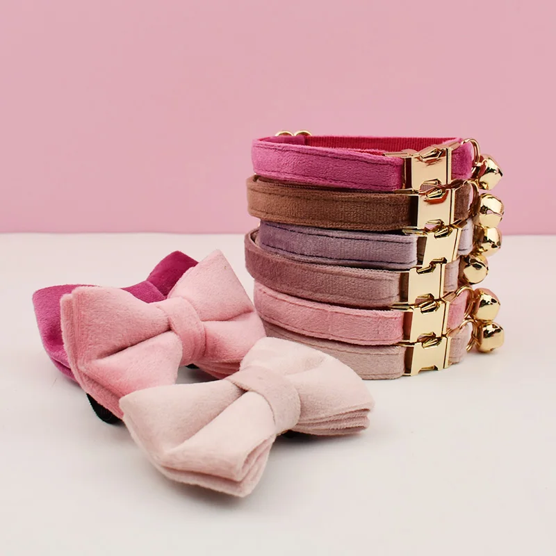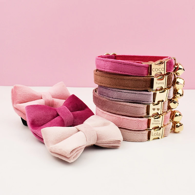 Collar de gato de lujo INS, Collar de gato de terciopelo con viento, Collar de gato personalizado con placa de nombre, pajarita con campana, collares grabados personalizados para gato