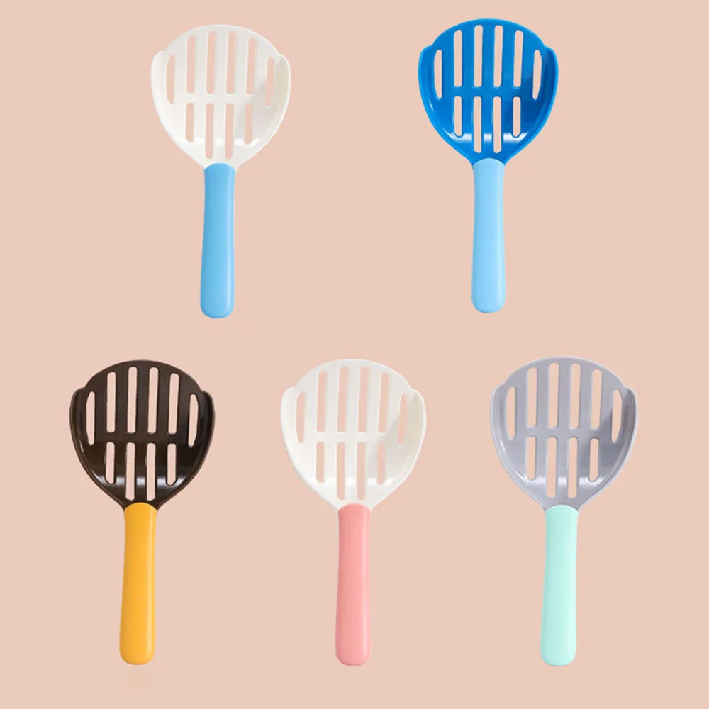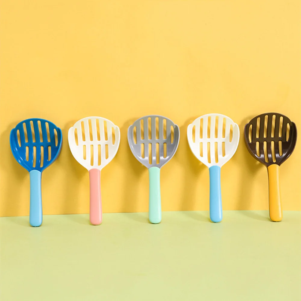 Suministros de limpieza para mascotas: cuchara de arena para gatos de plástico de color, cuchara duradera para residuos de mascotas con filtración eficiente,