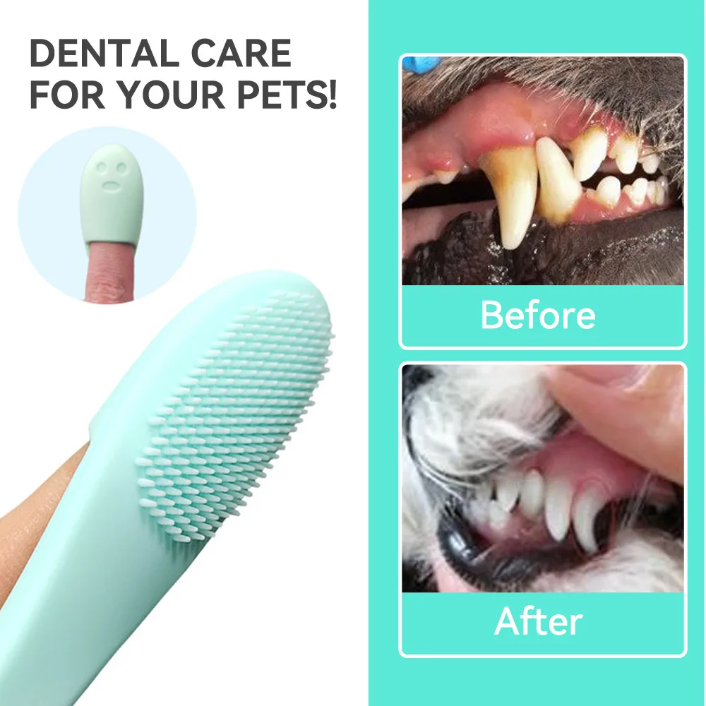 El cepillo de dientes se adapta cómodamente a tus dedos.Los 360° grados; El diseño le permite limpiar fácilmente toda la boca con unos pocos golpes, reduciendo eficazmente la placa y el sarro, previniendo enfermedades bucales y refrescando instantáneamente el aliento de su mascota.